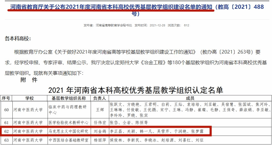 马克思主义中国化研究党支部获评河南省本科高等学校优秀基层教学组织