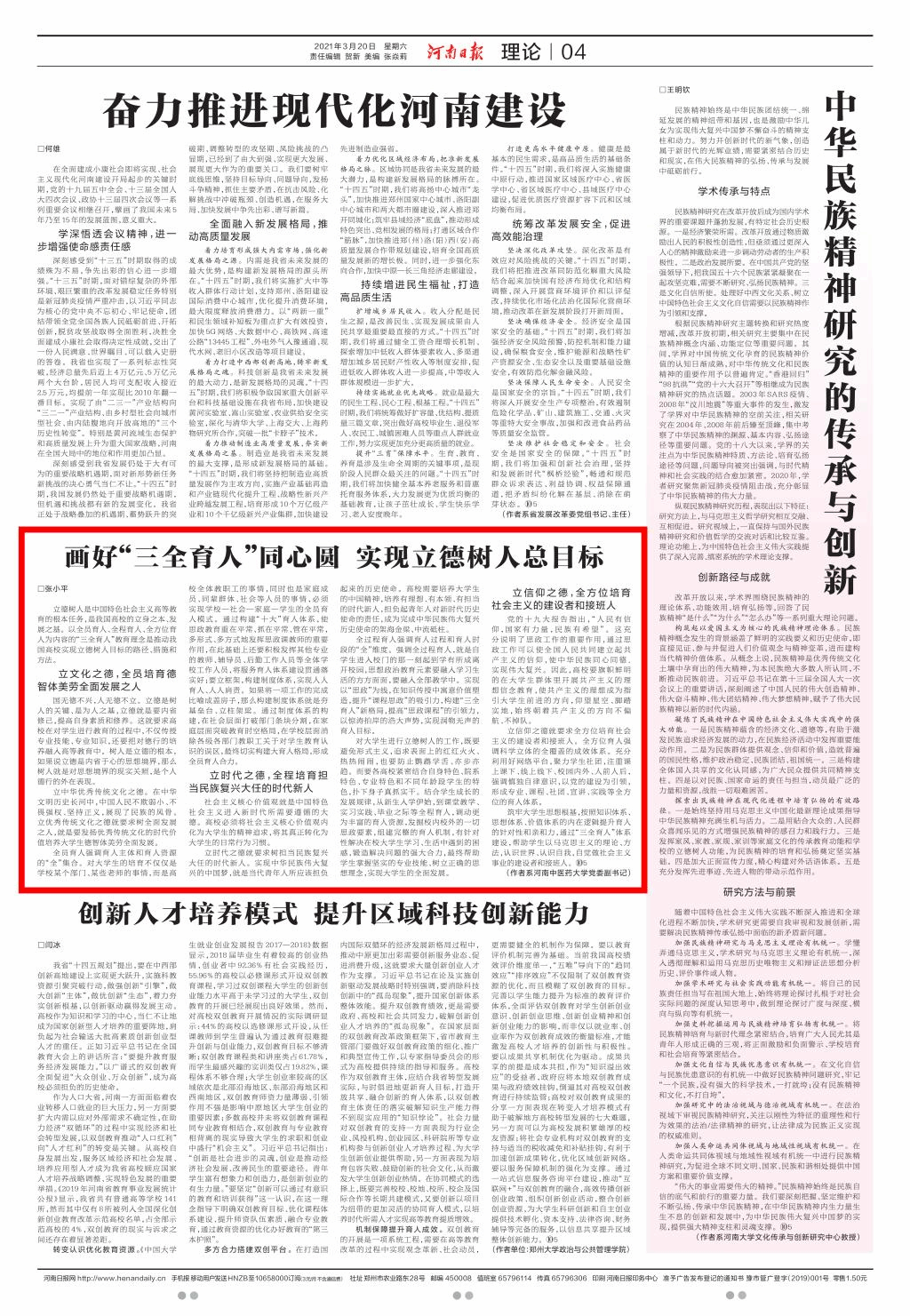 《河南日报》理论版刊发leyu·乐鱼(中国)体育官方网站党委副书记、工会主席张小平的理论文章《画好“三全育人”同心圆 实现立德树人总目标》