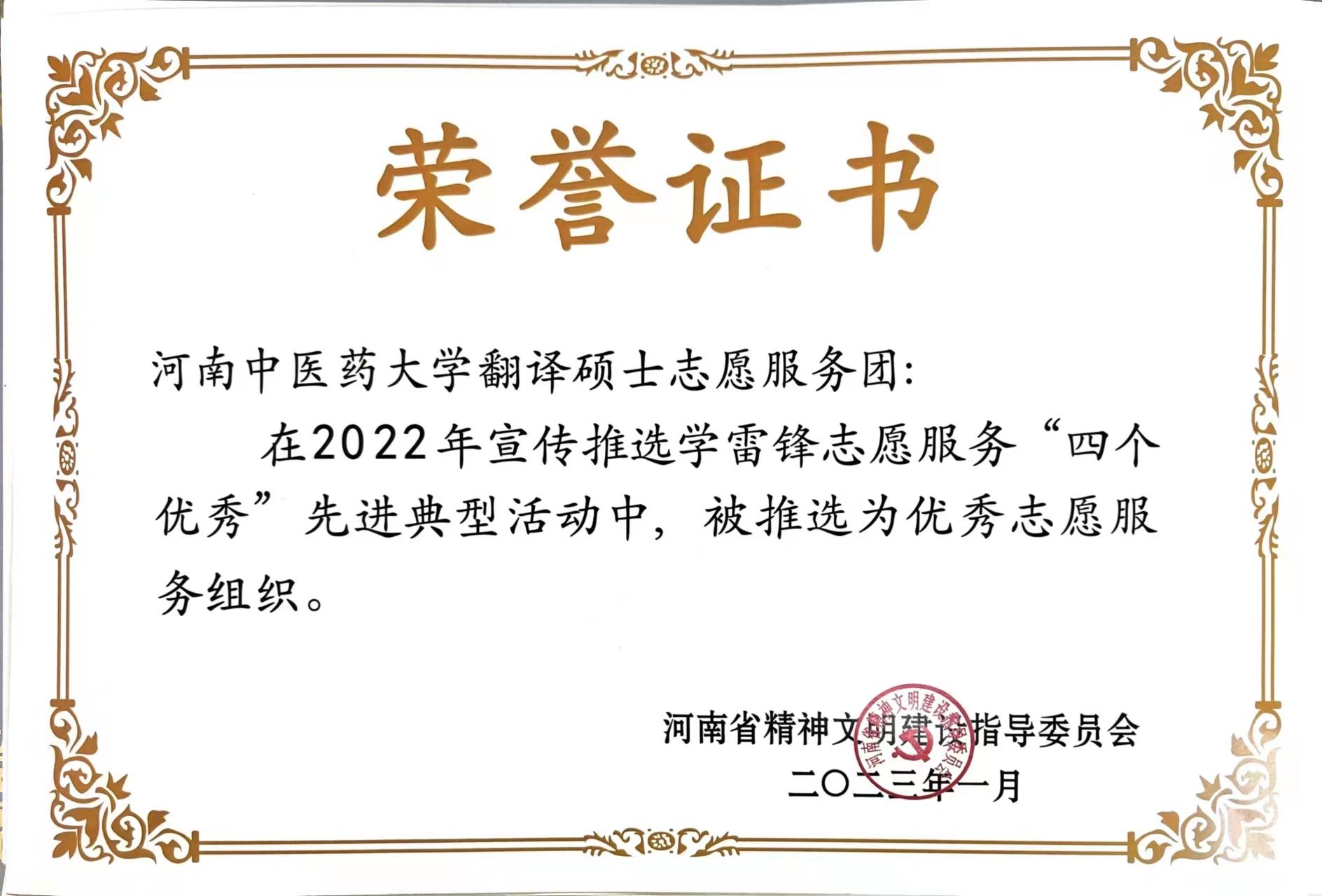 翻译硕士志愿服务团荣获优秀志愿服务组织