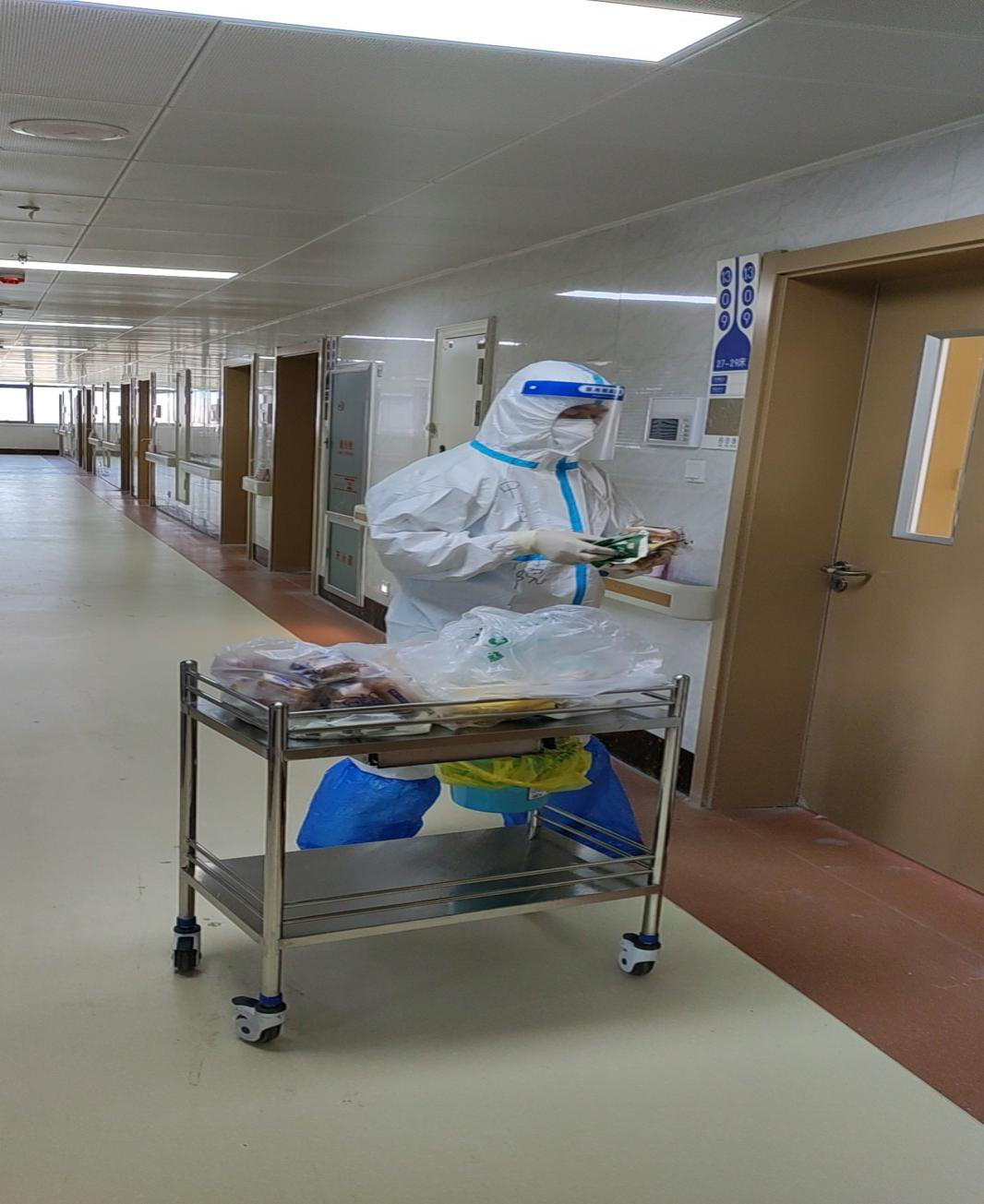 李春芝护士刚到新院区被临时任命为总护士长。10多年的职业素养和高度的责任感让护士姐妹们很是佩服。进入新院区后,李春芝就开始了各种忙碌:设备到位连接调试,感控防控布置,患者床位安排,值班排班……,不到5分钟,她穿的防护服就前心贴着后背,就像刚从水中捞出来一样。
