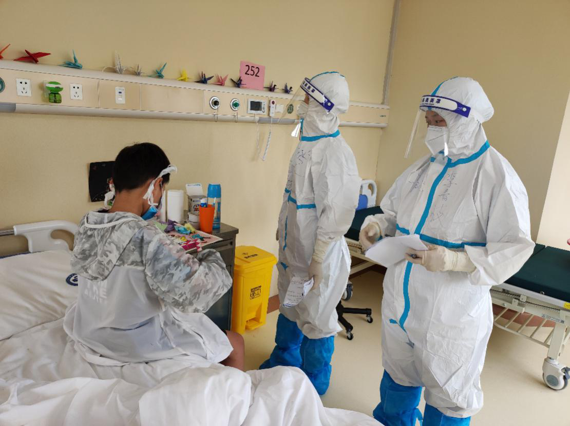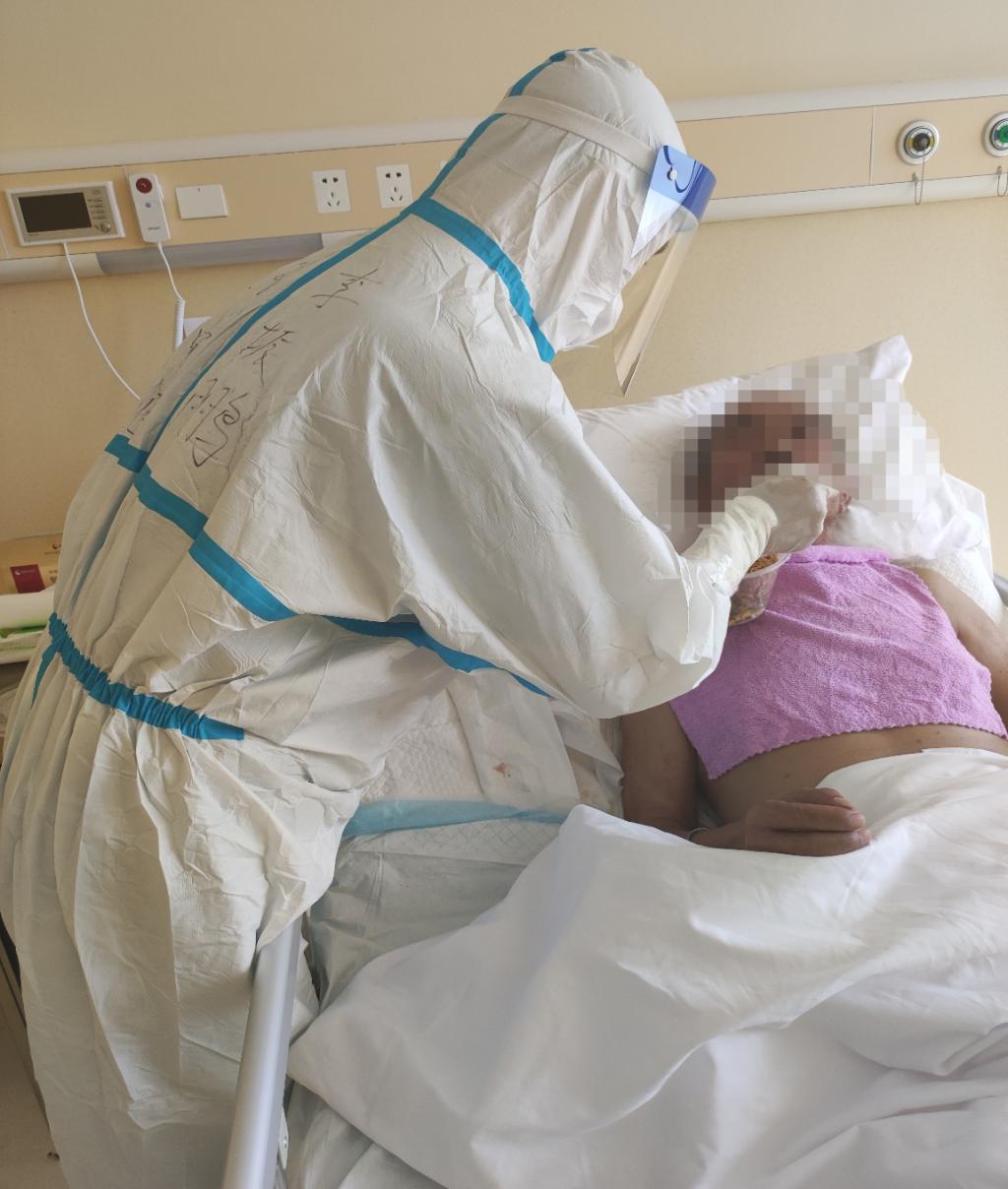 “医学治疗还算不着累,也能坚持。但是有的患者的心理压力太大了,我能感受他们那时候的心情。”李婷婷很能换位思考,所以每次在她查房的时候,总是不忘给患者鼓励和安慰。每天隔着防护设备,她总能找机会给患者们握握手,拍拍肩,给他们说鼓励而温暖的话。