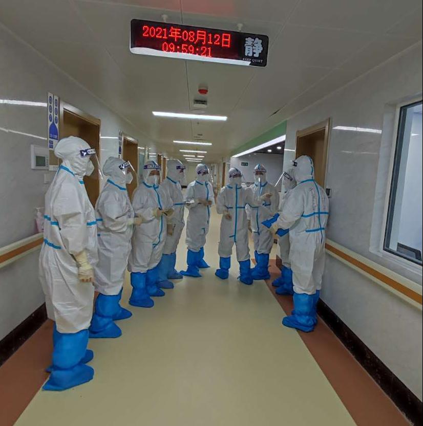 刚转运到新院区,有的患者非常害怕,经常情绪失控;有的患者生活不能自理,没有家人陪护。缺乏医学知识的他们,在面临如此凶猛的德尔塔病毒时,恐惧无时无刻不在冲击着他们的内心,患者的情绪需要安抚。对于李春芝来说,这种场面曾在2020年初疫情刚爆发的时候也遇到过。“患者不仅需要严谨科学的医学治疗,更重要的是,他们需要悉心的心理建设和正确疏导。”