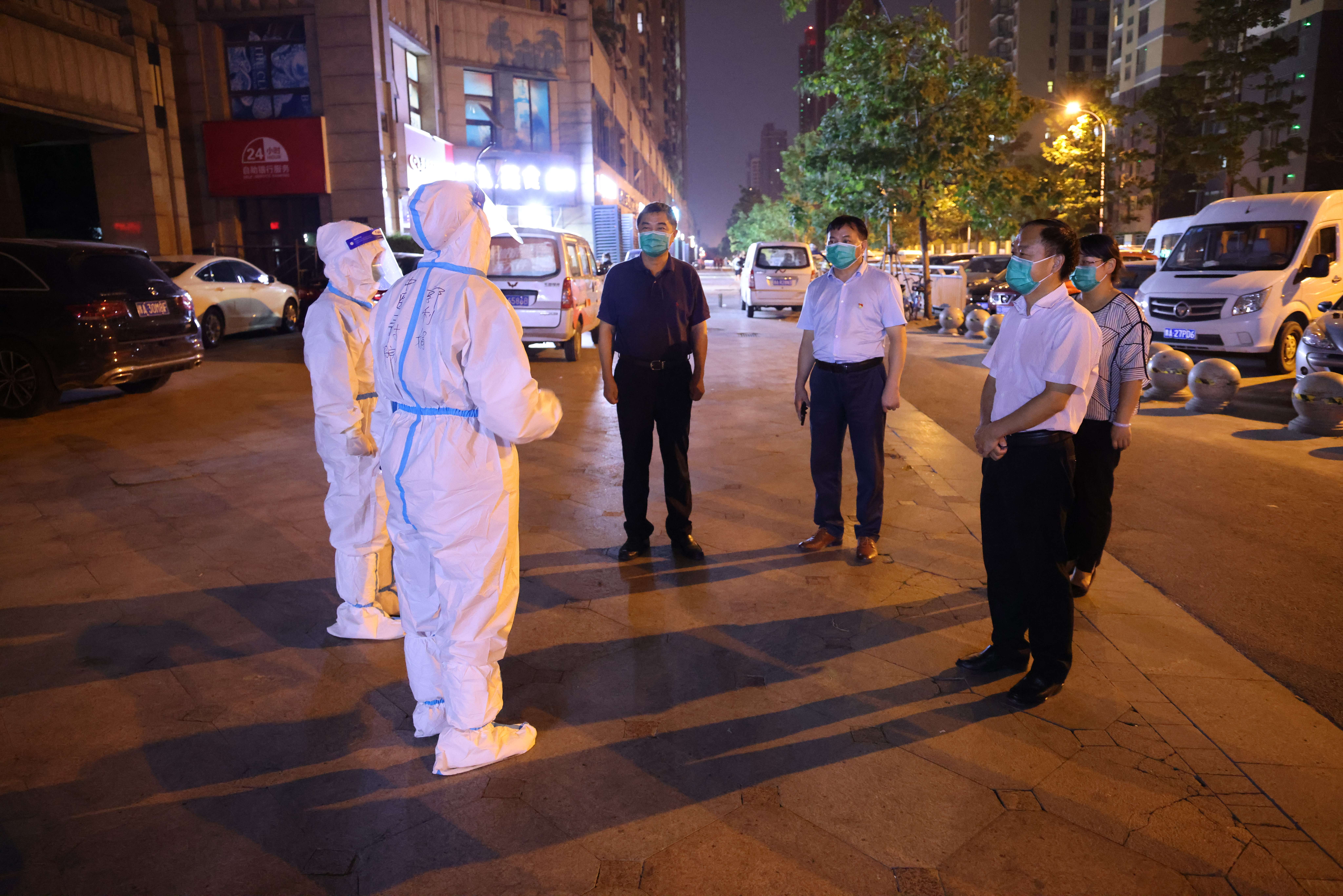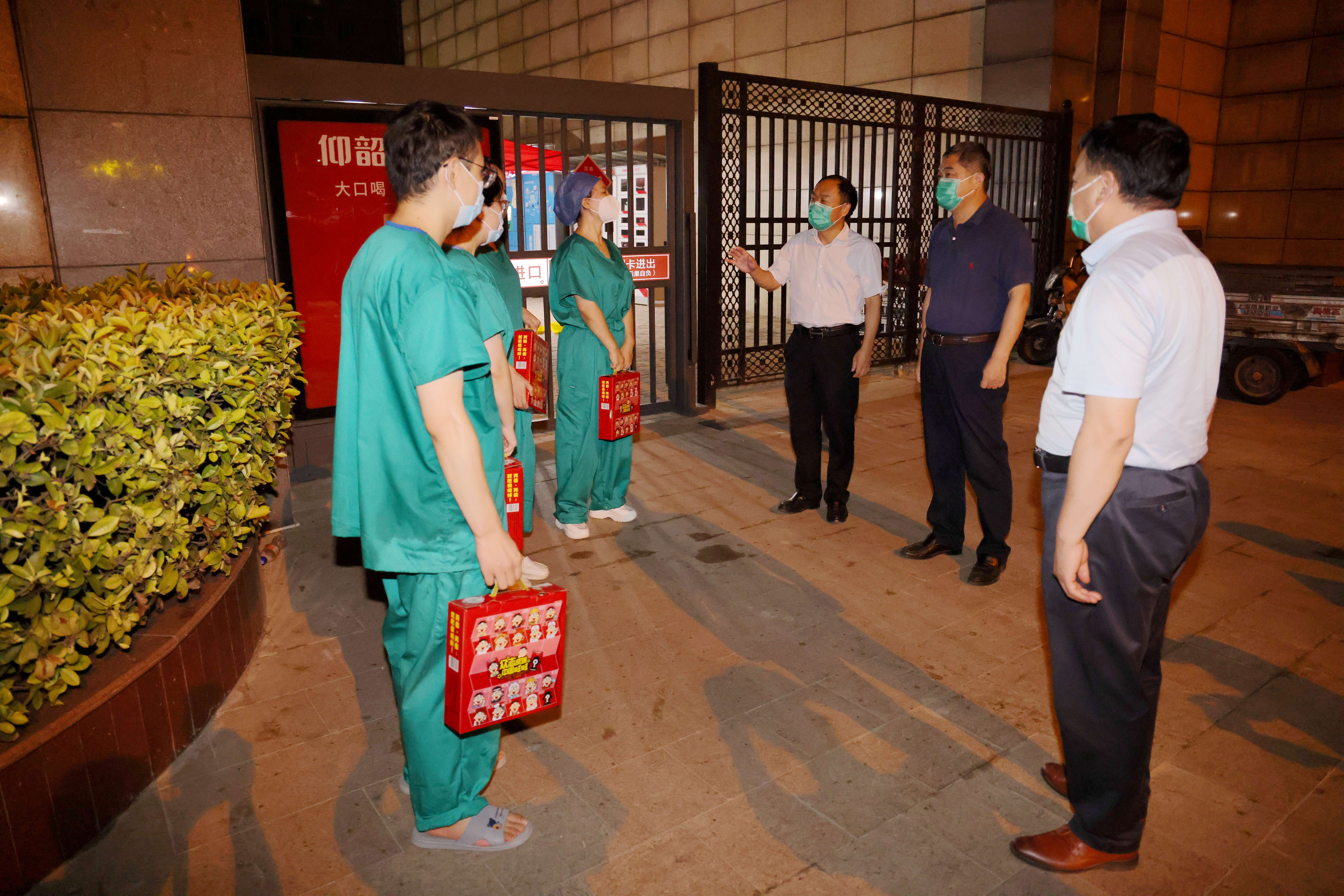 8月的郑州,骄阳似火,厚重防护衣下采集队员们的健康安全始终牵动着医院党委的心。8月8日晚11时,院党委书记周运峰、院长张大伟、工会主席蔡庆春带领相关科室负责同志先后到郑东新区晖达新领地、奥兰花园采集点、嘉辰广场采集点,对优化核酸检测服务流程进行了现场督导,为奋战在一线的医护人员送去院领导以及院工会组织的亲切关怀和殷切问候,并送上解暑物资。
