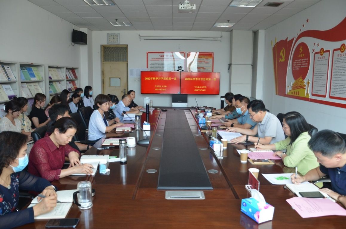 本网讯(文/刘岳超 图/王彦明)为进一步加强思想政治理论课教师队伍建设,全面贯彻落实课程实施要求,以实际行动和饱满的热情迎接党的二十大胜利召开,2022年9月22日下午,校党委副书记、工会主席张小平带领相关部门负责人深入马克思主义学院召开秋季开学“思政第一课”专题学习会,马克思主义学院思政课教师、学生代表出席,会议由马克思主义学院院长张会萍主持。