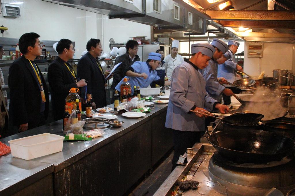 按照计划,12月20日14时,大赛正式拉开帷幕。学校工会副主席曹蕴俐、学生处副处长王晓艺和两名学生代表应邀前来,与后勤集团公司党总支书记陈德宝、总经理朱建光和副总经理杨清华、杨昕、赵书宏一起,组成评委团。由饮食服务公司各班组组成的16名参赛选手参加了比赛。