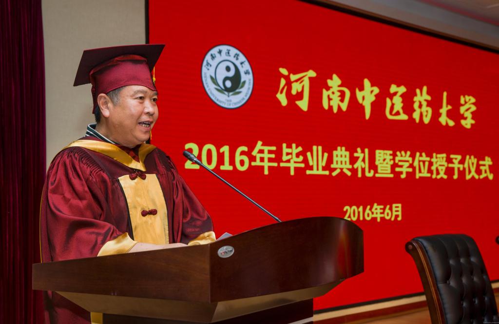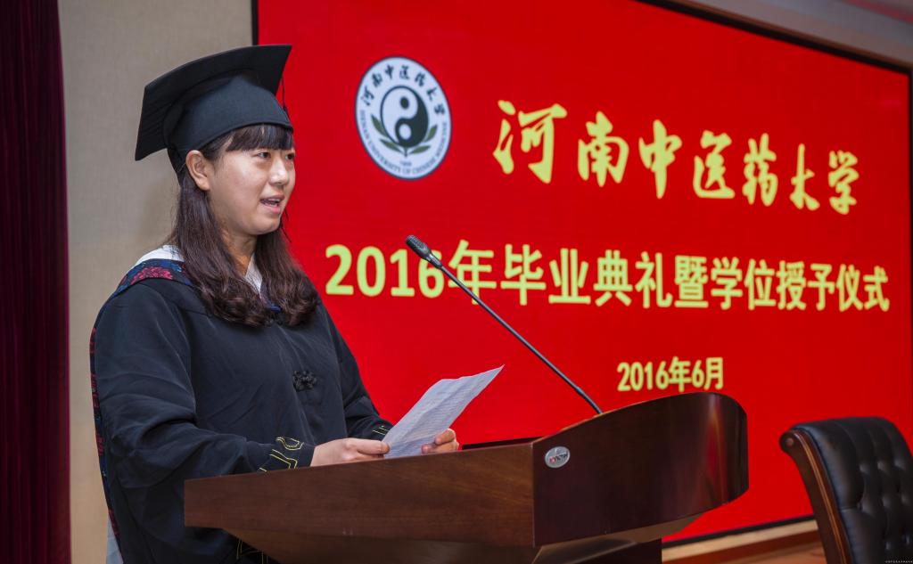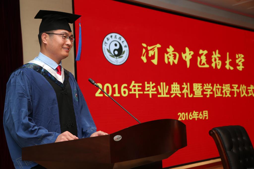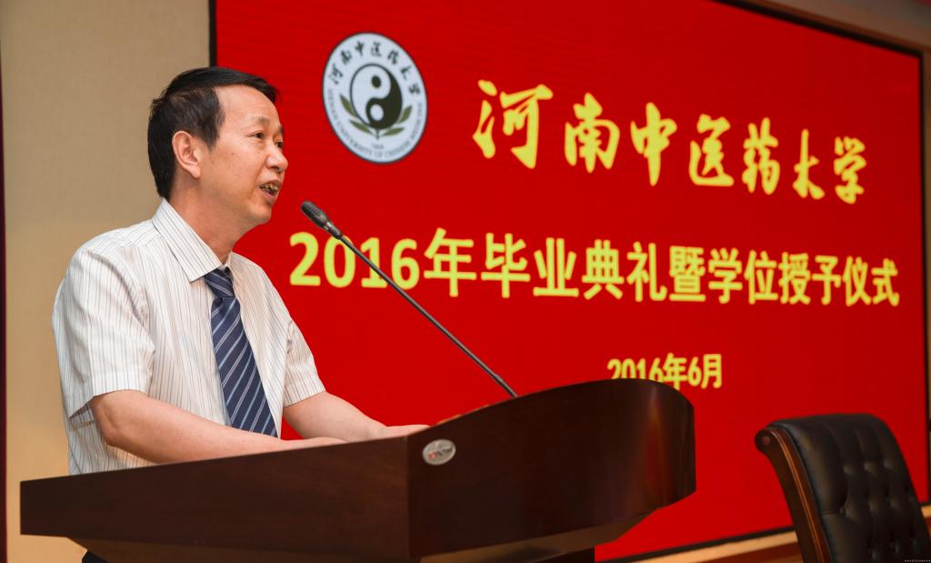 教师代表、第一临床医学院博士生导师翟文生教授向即将毕业的同学们表达了祝贺,叮嘱大家离开学校并不意味学习的结束,向病人学习,向社会学习,向同行学习,养成终身学习的习惯,善用中医的辩证哲学思维分析解决问题,为家、为校争光,并祝愿每位毕业学子都拥有理想的工作,幸福的家庭,过自己想过的生活。