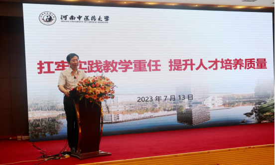 聂勇、栾川县中医院党委书记苏智峰、洛阳市中医院康复科主任李辉分别代表附属医院、实践教学基地、优秀带教老师进行发言。闫永红和庞国明分别围绕如何高质量开展实践教学和临床带教为全体参会人员作了主题报告。