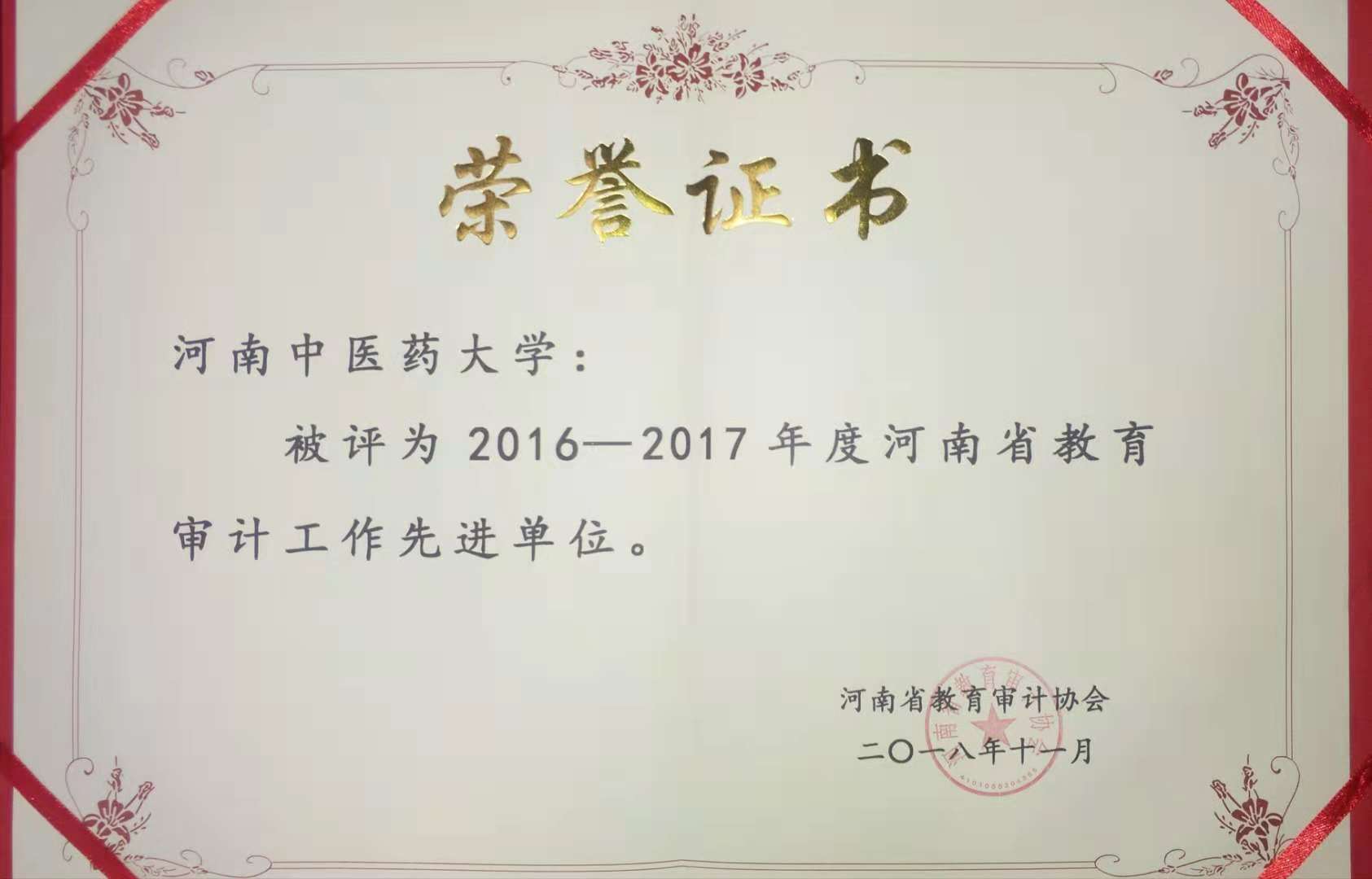近日,从河南省教育审计协会获悉,leyu·乐鱼(中国)体育官方网站审计处获得2016-2017年度河南省教育系统内部审计工作先进单位称号,王倩、张熙原两位同志获得河南省教育系统内部审计先进工作者称号。