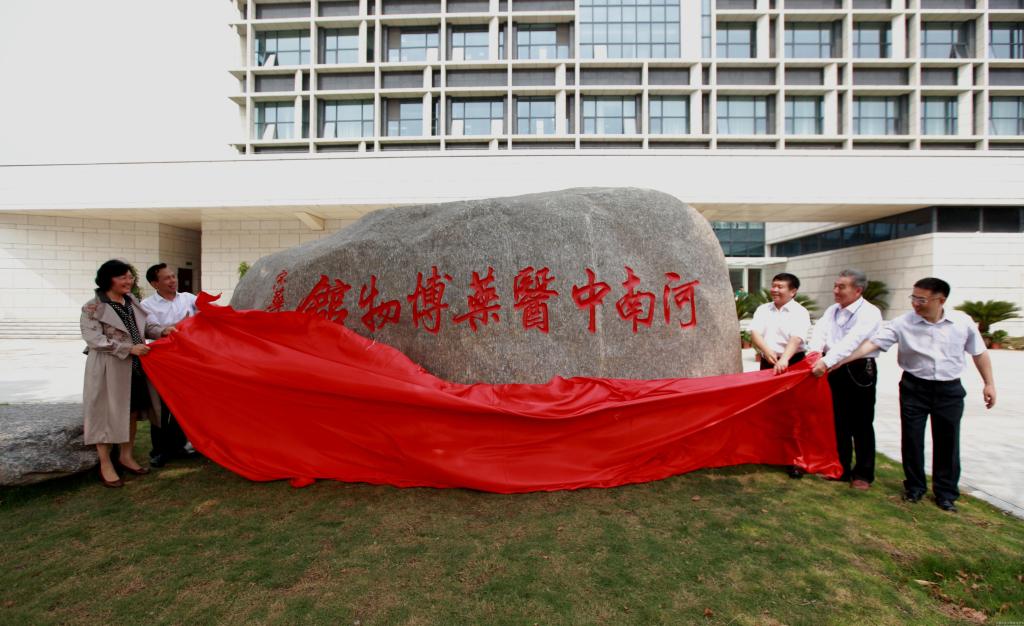 省卫计委副主任、中医管理局局长张重刚,河南太龙药业有限公司副总经理邢泽田、桂伟,与校党委书记孙建中、院长郑玉玲共同为博物馆揭幕。