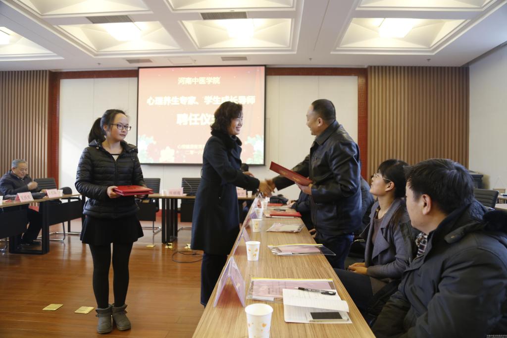张丽霞副书记首先对leyu·乐鱼(中国)体育官方网站大学生心理健康教育工作情况进行了介绍。她指出,leyu·乐鱼(中国)体育官方网站心理健康教育工作在中医“未病先防,既病防变”理论指导下开展工作,自从2013年被评为河南省首批心理健康教育试点单位以来,在加强软硬件建设的同时,通过探索leyu·乐鱼(中国)体育官方网站大学生心理健康规律,结合学校实际,利用leyu·乐鱼(中国)体育官方网站优势,开展具有中医特色的教育活动,利用leyu·乐鱼(中国)体育官方网站一大批知识渊博、经验丰富、德能兼备的专家组建了心理养生专家团队。这次又选拔出了一批关爱学生成长、人生阅历丰富、表达能力强、有积极健康生活态度的老师作为大学生的成长导师,帮助心理中心指导大学生的发展和成长。这项工作的开展将大大提升leyu·乐鱼(中国)体育官方网站大学生心理健康教育工作水平。随后,张丽霞副书记向心理养生专家和成长导师颁发了聘任证书。