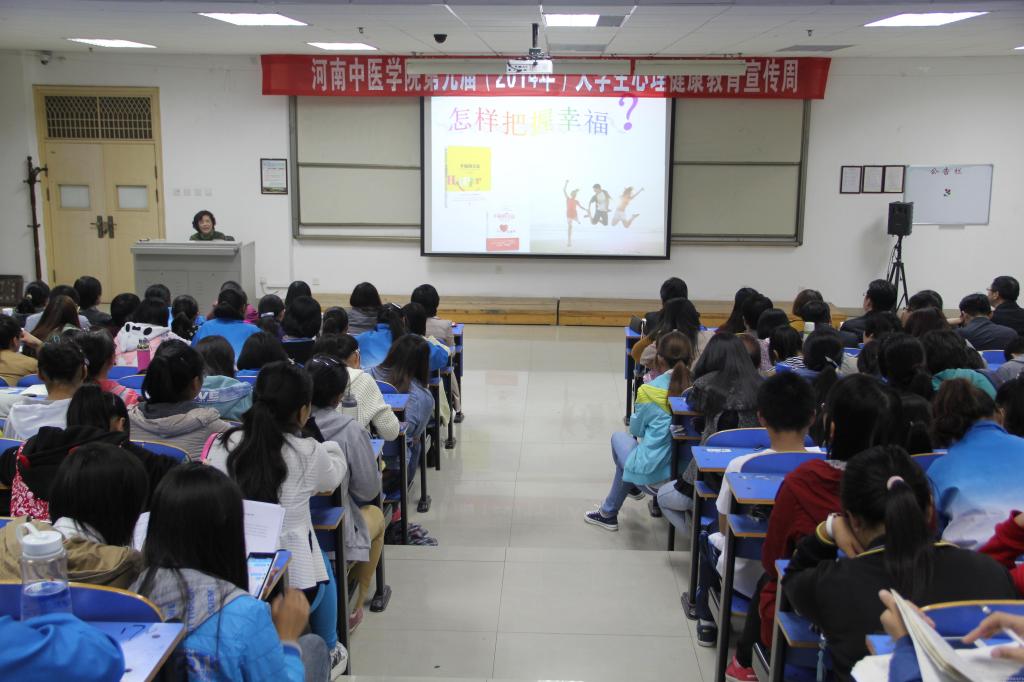 开幕式上,李俊芝主任宣读了《关于开展leyu·乐鱼(中国)体育官方网站第九届大学生心理健康教育宣传周活动的通知》(院学字[2014]31号),对本届心理健康教育宣传周期间的相关活动进行了通报和安排。之后,张丽霞副书记以“积极心理学与幸福人生”为主题,为在场的广大师生作了首场报告。她首先给大家介绍了积极心理学的兴起与发展,并结合自己学习积极心理学的心得体会和生活经验,给大家传授了“把握幸福的方法”:确立明确的目标、学会改变、建立和谐的人际关系、关注自我的积极面和知足常乐。张丽霞副书记精彩的讲解、生动而又富有哲理的故事获得了大家的好评,同时引发了在场师生对于“幸福”的深层次思考。