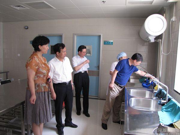 查德忠司长一行人实地查看了医院新建成的消毒供应中心和正在改扩建的项目,对标准化消毒供应中心的建设给予了高度的评价。随后,查德忠司长和张重刚局长一行来到会议室听取医院关于建设三级甲等单位情况的汇报。会议由三附院院长田力主持。