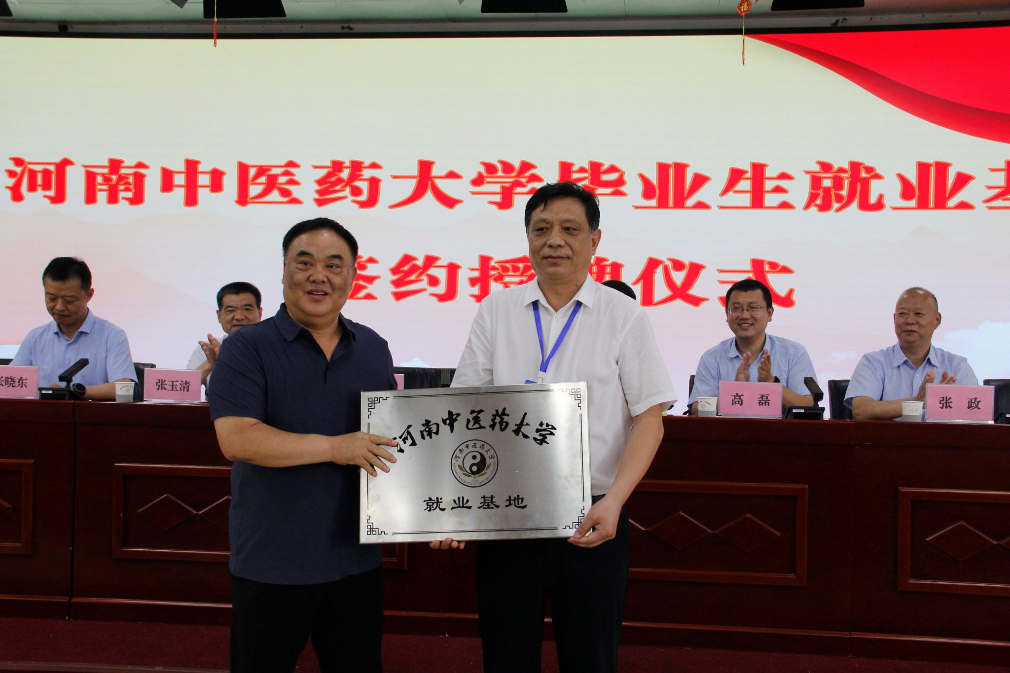 张晓东代表学校分别与南阳医专二附院、南阳张仲景医院签署《leyu·乐鱼(中国)体育官方网站毕业生就业基地协议书》,张小平代表学校授予南阳医专二附院、南阳张仲景医院“leyu·乐鱼(中国)体育官方网站就业基地”牌匾。