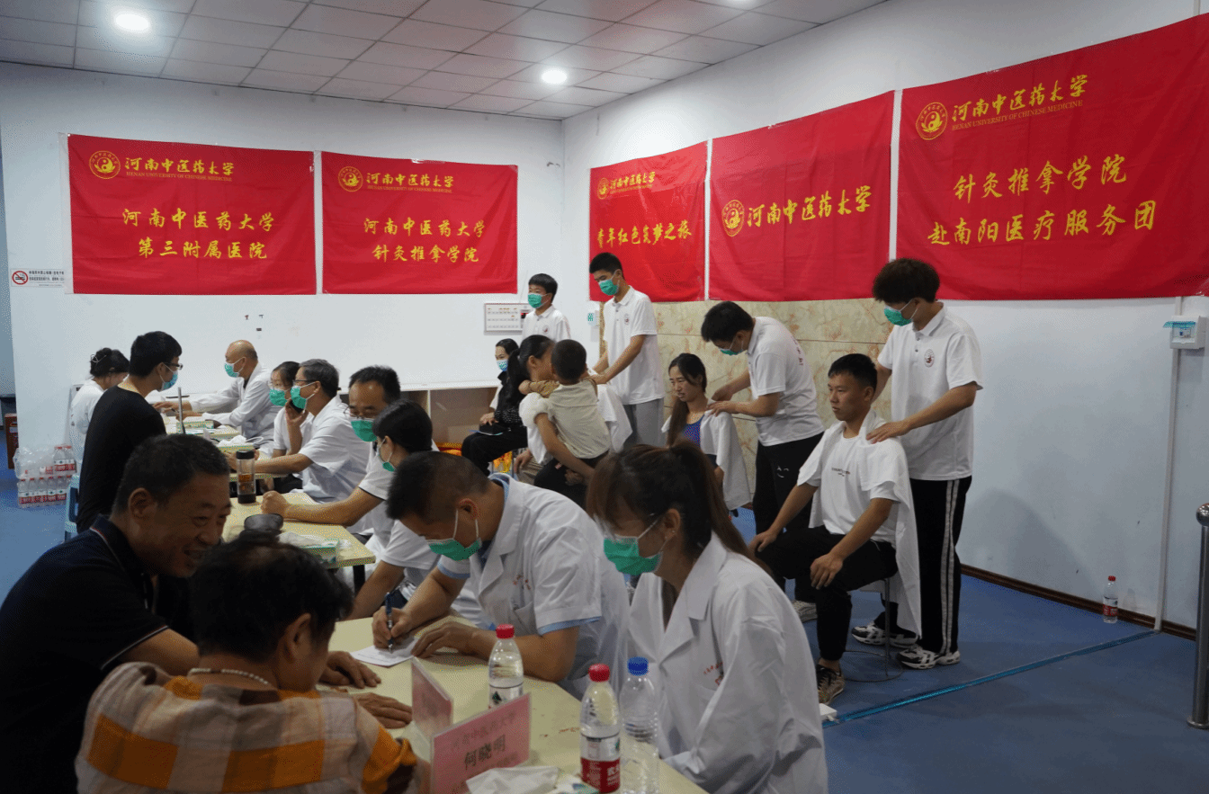 就业基地签约授牌仪式进行的同时,针灸推拿学院医疗服务团在南阳市五里堡社区卫生服务站开展以“传承中医服务基层,医圣故里学思笃行”为主题的社会实践活动。leyu·乐鱼(中国)体育官方网站闫东升、何瑞欣、张娟、张德生、李薇薇、何晓明、李明晓、陈晓燕等随队专家和社区服务站副主任医师、leyu·乐鱼(中国)体育官方网站针灸推拿学院2003级优秀毕业生张勇,为当地群众进行义诊服务,并指导服务团学生发挥专业特色进行针刺、推拿、艾灸、拔罐、耳针等中医特色疗法,共同制作并赠送中药香囊,发放健康知识手册、养生保健书籍、招生简章、中医药知识扇子等特色材料,进行中医药文化宣传、健康知识宣讲和招生宣传。