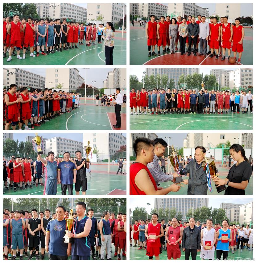 2018年5月10至22日,由校工会主办,体育教研部承办的leyu·乐鱼(中国)体育官方网站2018年教职工男子篮球赛在新校区西篮球场顺利举办,共有24个基层工会的200余名教职工组成10支代表队参加比赛。22日比赛结束后举行了颁奖仪式,副校长、教职工篮球协会名誉会长张小平、校工会主席张加民分别为获得冠、亚、季军和优胜奖的代表队颁发了奖杯和奖状。