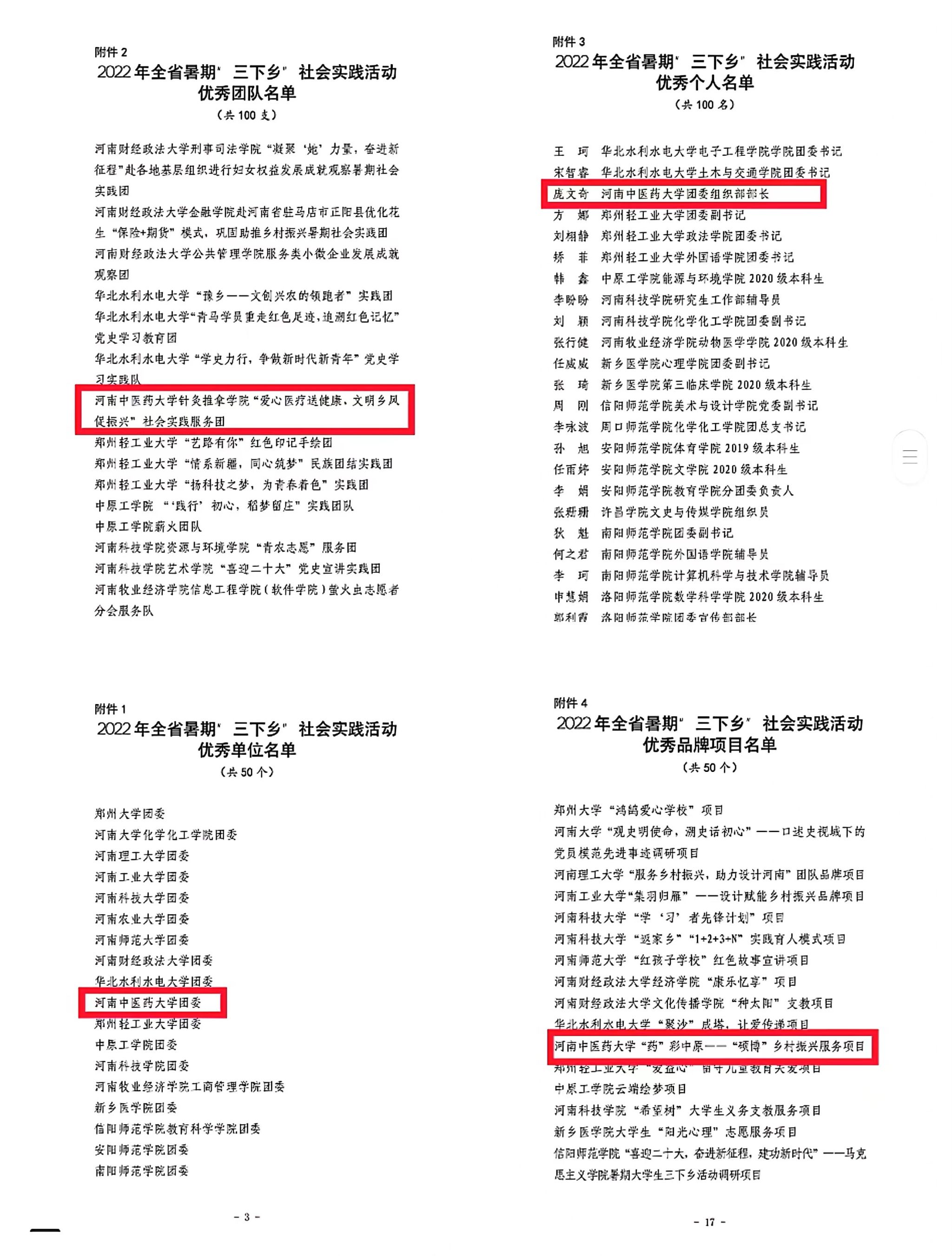 本网讯(文/图 庞文奇)近日,团省委办公室下发《关于开展2022年度全省社会实践活动总结工作的通知》。leyu·乐鱼(中国)体育官方网站团委被评为2022年全省暑期“三下乡”社会实践活动优秀单位,leyu·乐鱼(中国)体育官方网站针灸推拿学院“爱心医疗送健康,文明乡风促振兴”社会实践服务团被评为优秀团队,校团委庞文奇被评为优秀个人,药学院“药”彩中原——“硕博”乡村振兴服务项目被评为优秀品牌项目。
