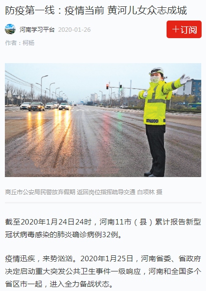 疫情迅疾,来势汹汹。2020年1月25日,河南省委、省政府决定启动重大突发公共卫生事件一级响应,河南和全国多个省区市一起,进入全力备战状态。