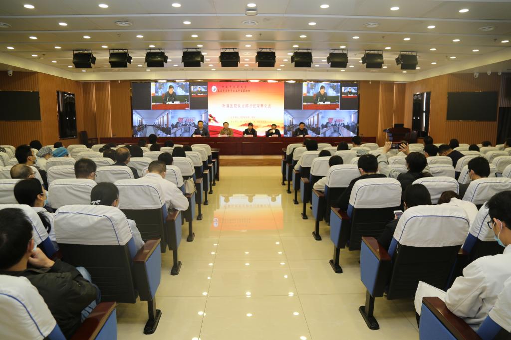 本网讯(文/郑金铎 图/冯建昭)为深入贯彻习近平新时代中国特色社会主义思想,全面贯彻落实好新时代党的组织路线,巩固深化“不忘初心、牢记使命”主题教育成果,2020年11月11日,由学校党委组织部、党校主办,第一附属医院承办的“附属医院党支部书记观摩交流会”顺利召开,此次观摩交流会采用视频连线形式进行,主会场设在第一附属医院。第二附属医院和第三附属医院为会议分会场。校党委组织部副部长马赟,第一附属医院党委书记翟剑波、第二附属医院党委副书记张佩江、第三附属医院党委书记周运峰出席会议。会议由第一附属医院党委副书记张晓东主持。