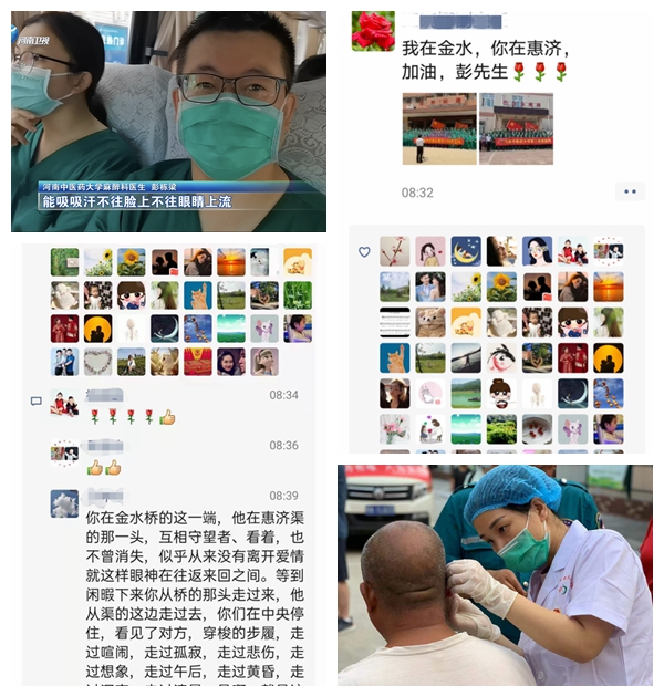7月28日,接到河南省卫健委的防汛救灾紧急通知,三附院要派出救灾医疗队驰援新乡卫辉市,她闻令而动,第一时间报名。她的眼眸里透着刚毅与坚定:“我是党员我先上”,她不敢告诉在家的父母,自己要冲向“危险”的地方保护他人的平安,她对两个年幼的孩子也只能忍下思念,把家中的责任留给同为医务人员—医院麻醉科的丈夫“彭先生”。她不太爱表达思念,只言片语互相守望,在疫情猛兽之间共同守护共同的信念。