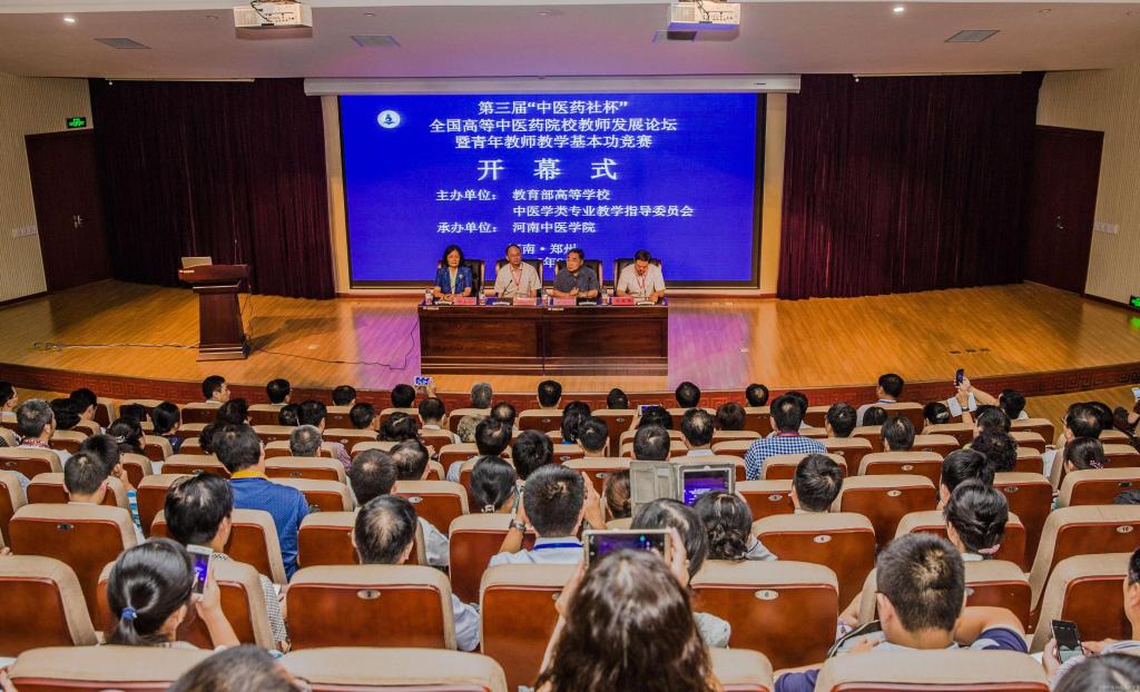 2015年8月22日上午,第三届“中医药社杯”全国高等中医药院校教师发展论坛暨青年教师教学基本功竞赛在leyu·乐鱼(中国)体育官方网站龙子湖校区新图书馆第一报告厅开幕。此次活动由教育部高等学校中医学类专业教学指导委员会主办,leyu·乐鱼(中国)体育官方网站承办。教育部高等学校中医学类专业教学指导委员会主任委员、中国中医科学院院长、天津中医药大学校长张伯礼院士,安徽中医药大学校长王键教授,教育部高等学校中医学类专业教学指导委员会秘书长、天津中医药大学副校长周桂桐教授及leyu·乐鱼(中国)体育官方网站校领导郑玉玲、李建生出席开幕式,来自全国37所中医药专业院校的380余名专家评委、参赛选手与leyu·乐鱼(中国)体育官方网站各相关职能部门负责人共同参加仪式。仪式由天津中医药大学副校长周桂桐教授主持。