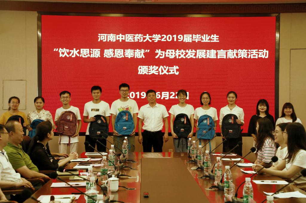 座谈会后,许二平为在leyu·乐鱼(中国)体育官方网站举办的2019届毕业生“饮水思源 感恩奉献”——为母校发展建言献策活动中有优异表现的毕业生颁发奖品,并向大家赠送了学校精心准备的礼物。