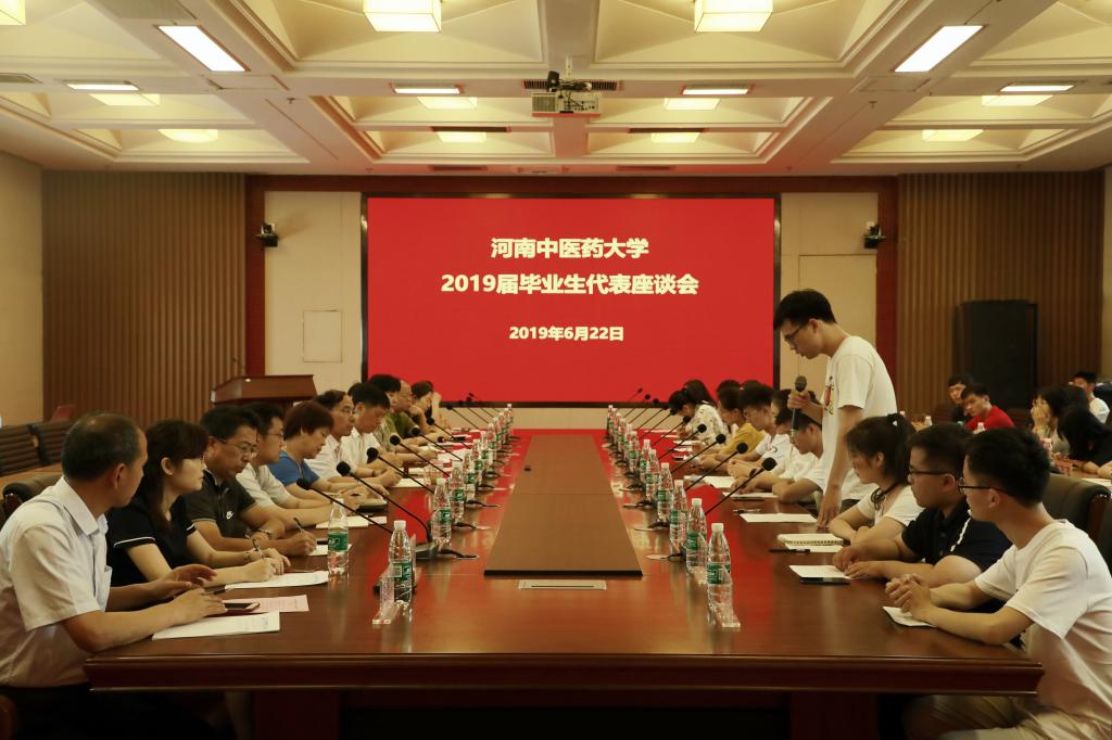 座谈会前,与会人员共同观看了由学工部制作的《向往、践行、逐梦——我自豪,我是中医人》2019届毕业生纪念视频。接着,来自各学院的本科生代表和研究生代表围绕专业结构优化与课程设置、实习实训实践能力提升、学生科研创新能力培养、图书馆结构优化与数字资源使用、学生宿舍空调改造等方面积极发言,提出了中肯的意见和建议,为母校更好发展建言献策。