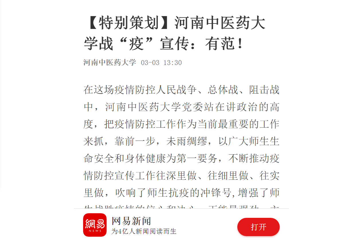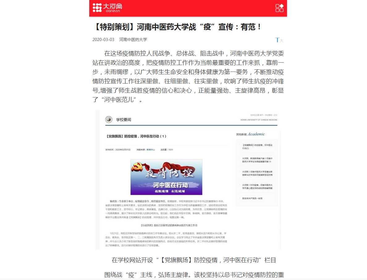 2020年3月3日,中宏网、大河网、网易新闻对leyu·乐鱼(中国)体育官方网站有范的战“疫”宣传进行报道。