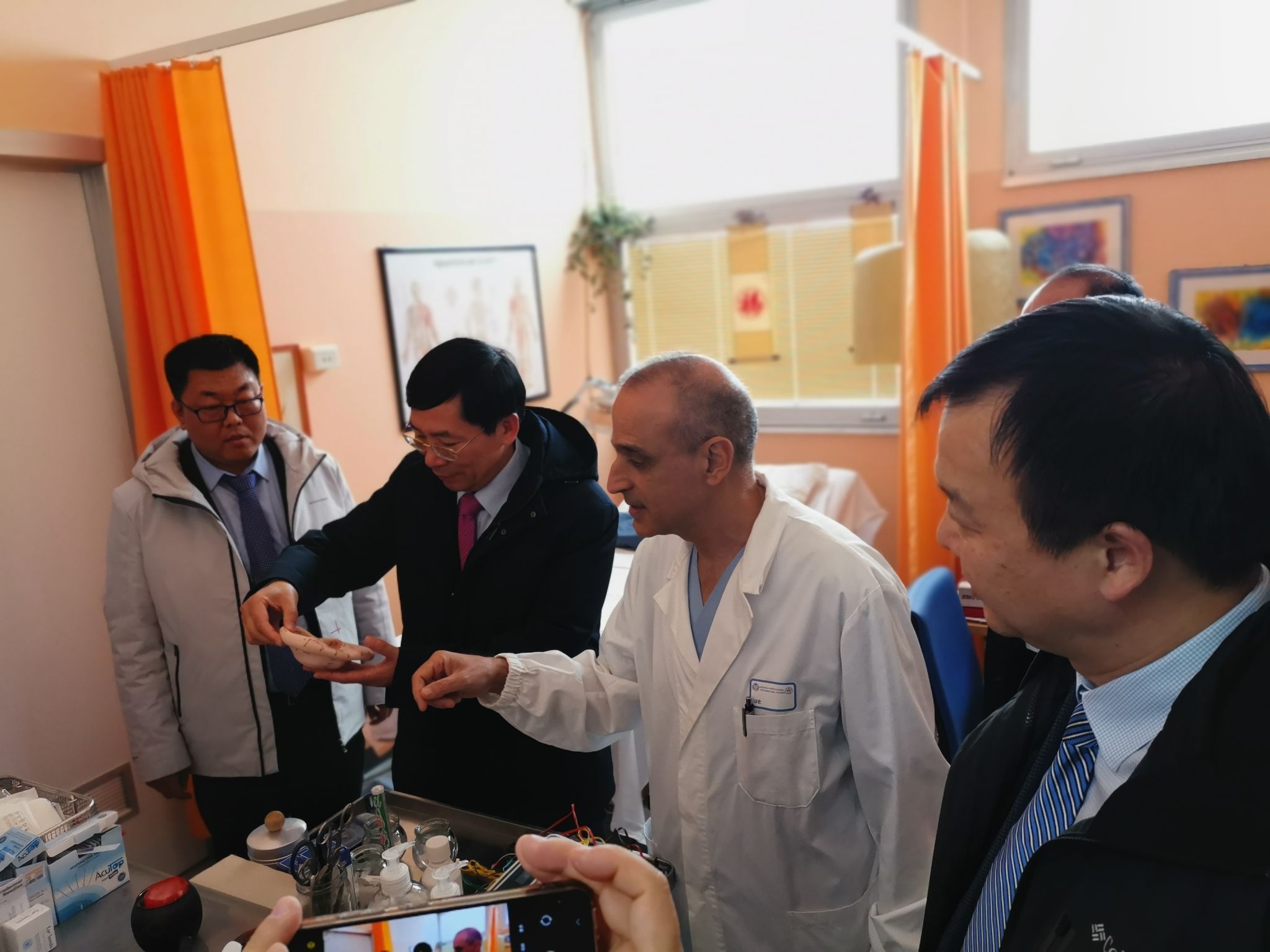 代表团在英国访问温彻斯特大学,参观皇家汉普郡医院,开启了温彻斯特大学与中国高校合作的大门;在法国拜访了中国驻法国大使馆,做了题为《养肾进行时》中医专题讲座并开展义诊,受到大使馆工作人员及家属的热烈欢迎;参观了塞纳市政府和“中—法中医药中心”、与斯特拉斯堡JZ中医学院进行了友好会谈,推动了中医药教育培训、针灸康复医疗共建和中医文化等在法国的推广和传播;在意大利访问了锡耶纳大学和锡耶纳大学医院,基耶蒂—佩斯卡拉大学及大学医学实验中心,与两所大学分别签订了合作谅解备忘录,为中外合作办学的进一步深入合作和师生交流建立了良好的平台,并就未来开展中医药培训和合作创造了条件。