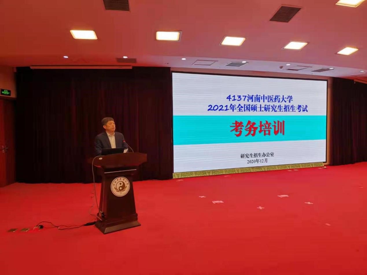 一附院感染控制科主任蒋雪松,针对全国研究生招生考试期间的疫情防控的工作及突发情况的应对工作作了详细阐述;研究生院招生办公室李晓坤介绍了考生报考情况,并结合往年典型案例领学了《2021年全国硕士研究生招生考试考务工作手册》,对考务注意事项等方面内容进行了详细讲解;信息技术学院张格博士对智能考生信息验证终端的操作规范和注意事项进行了详细讲解;招生考试考务组,对考务工作进行分工,责任到人,并对考务工作流程进行了模拟演示,以确保研招考试的顺利进行;研究生院副院长高剑峰对考务工作安排进行了总结发言,强调全体监考人员及工作人员务必做到讲政治、讲责任、讲爱心,确保圆满完成2021年研招各项任务;。