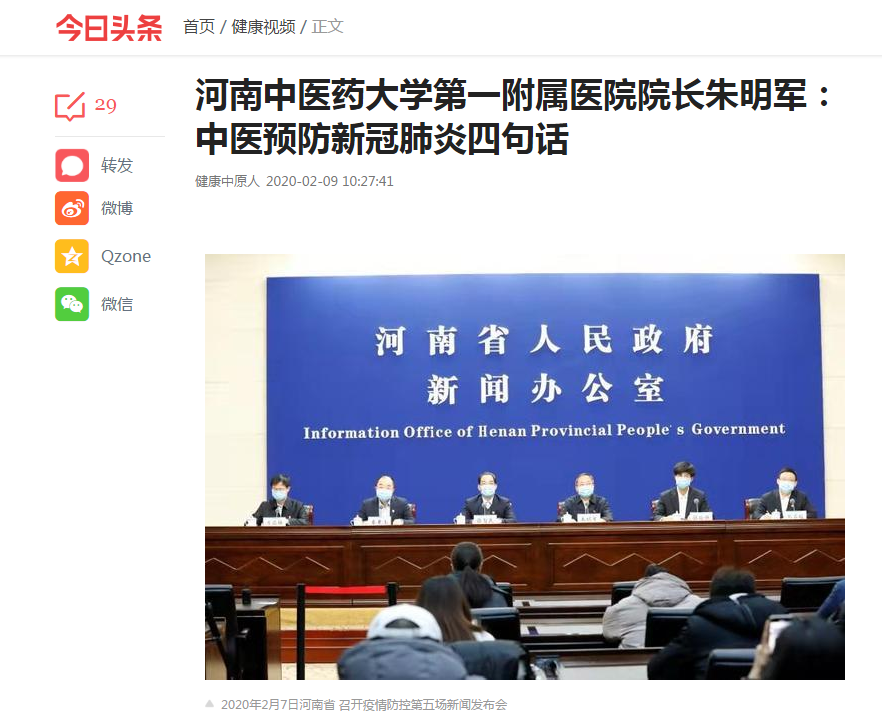 编者按:2020年2月8日-9日,大河健康报社官方微信、今日头条对leyu·乐鱼(中国)体育官方网站一附院院长朱明军教授参加河南省新型冠状病毒感染的肺炎疫情防控工作第五场新闻发布会进行报道。现将大河健康报社官方微信全文刊发如下:
