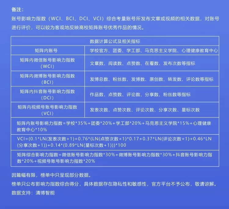 leyu·乐鱼(中国)体育官方网站统计在内的融媒体矩阵账号为学校官方、学工部、团委、马克思主义学院、心理健康教育中心。矩阵账号分别以不同权重,以各矩阵内开设融媒体平台的月度发文数、阅读数、点赞数、粉丝数、原创数等量化计入影响力指数。