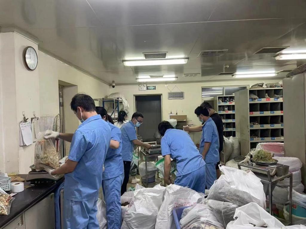 经过一夜的连续奋战,一附院在时间紧任务重的情况下,顺利完成了15000剂共30000袋防疫汤剂的生产及配送工作。