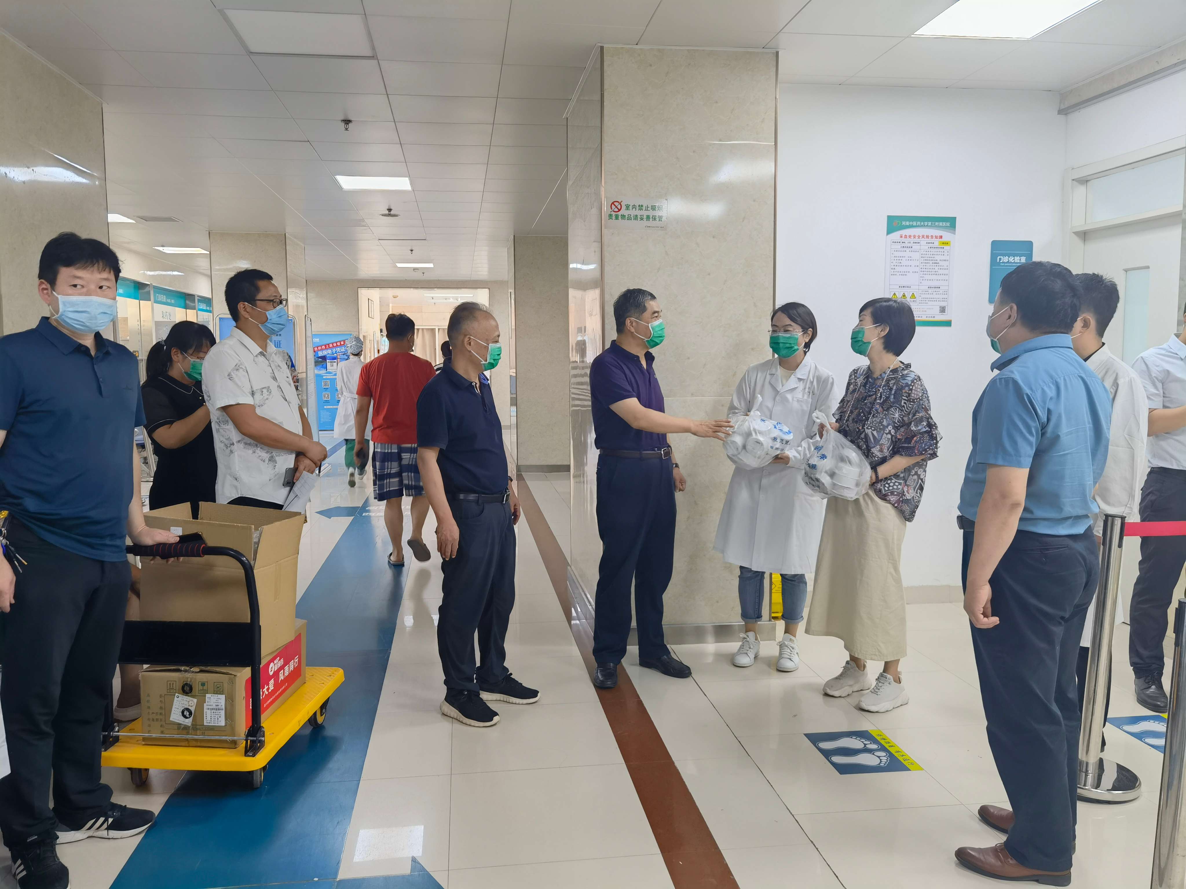 本网讯(文/图 姜楠 吴金苗)近日,郑州市新冠肺炎疫情反弹,防控形式严峻,三附院教职工再次发扬抗疫精神,积极投身疫情防控一线。8月3日上午,院长张大伟、副院长王志超、工会主席蔡庆春一行深入基层,走访慰问抗疫一线教职工,并将预防新冠肺炎中药送到大家手中。