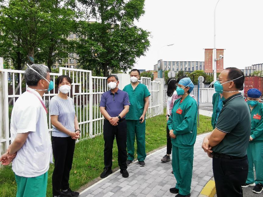 本网讯(文图/王丹)2022年5月7日上午,国家中医药管理局医政司副司长邴媛媛带领河南省援护医疗队队长、河南省卫生健康委副主任周勇、上海市卫健委中医药传承发展处处长王庆华、河南省卫生健康委中医处副处长段瑞昌等一行,到上海市第六人民医院临港院区慰问在此执行援助救治任务的leyu·乐鱼(中国)体育官方网站一附院援沪医疗队员。