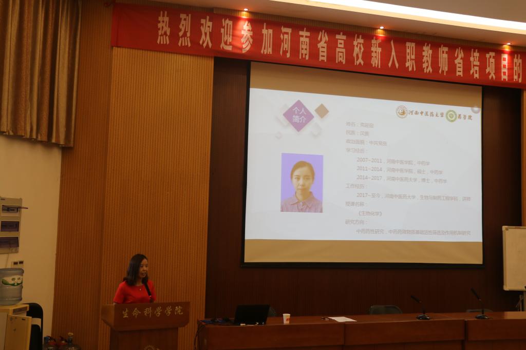 2019年河南省本科高校新入职教师国培及省培示范项目旨在帮助新入职教师树立正确的专业理念,培养良好的师德修养、学术规范与心理素质,掌握基本的教育教学技能,提高教书育人能力,为今后的教师生涯奠定良好基础。受河南师范大学相关负责老师的邀请,药学院克迎迎老师作为上届优秀学员代表在今年的修班上作报告,她主要将《生物化学》糖代谢章节的说课设计及课程授课、自己在去年研修班的收获以及返岗教学后的感受和经验与研修班的教师们进行了分享。