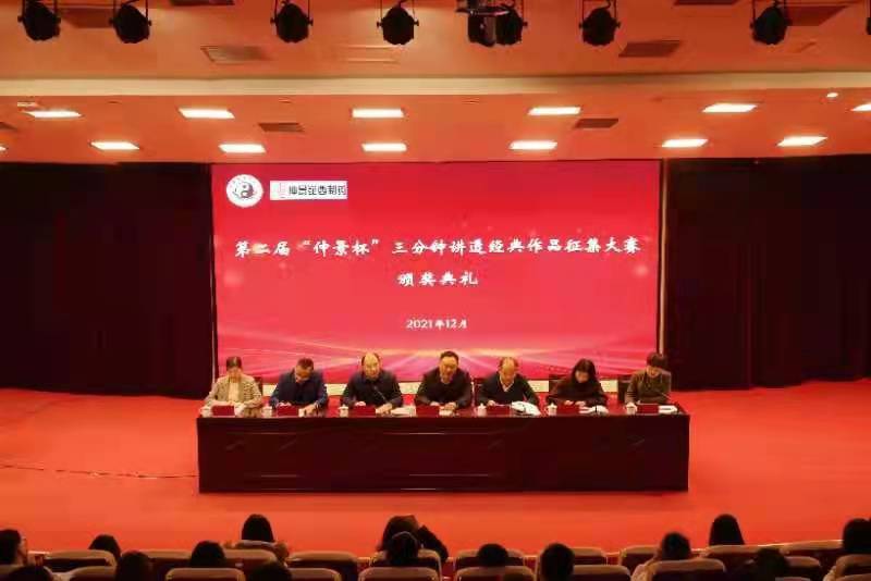 本网讯(文/郭薇 图/高灿阳 张忆珂)2021年12月16日下午,leyu·乐鱼(中国)体育官方网站第二届“仲景杯”三分钟讲透经典作品征集大赛颁奖典礼在图书馆第一报告厅举行。校党委副书记、工会主席张小平,党委委员、副校长苗明三,仲景宛西制药股份有限公司副总经理、leyu·乐鱼(中国)体育官方网站校友高松,品牌运营总监赵小燕,校友与社会合作办公室、校团委等部门负责人及学生代表共同参加了本次活动。仪式由校团委副书记邢瑶主持。