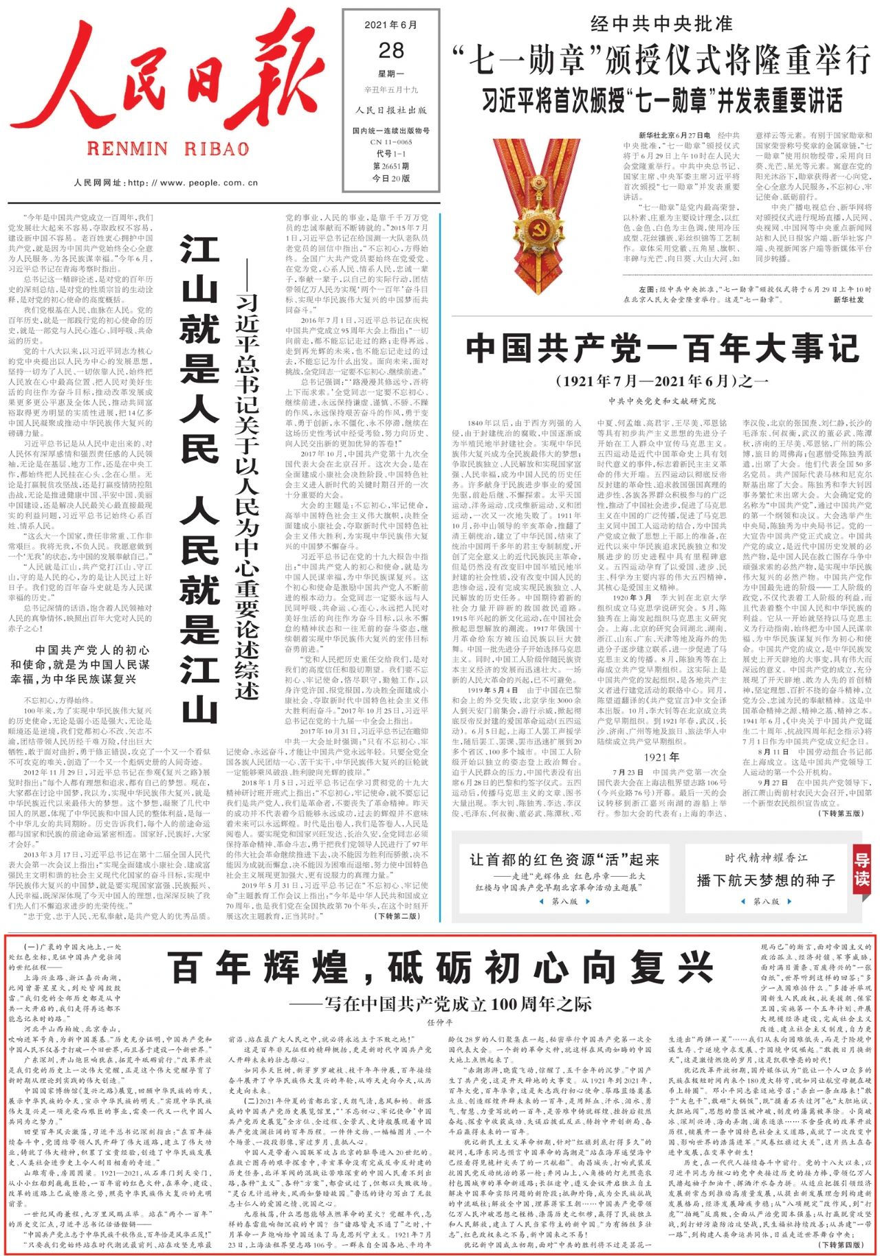 来源:人民日报(2021年6月28日 第01版)原题《百年辉煌,砥砺初心向复兴——写在中国共产党成立100周年之际》