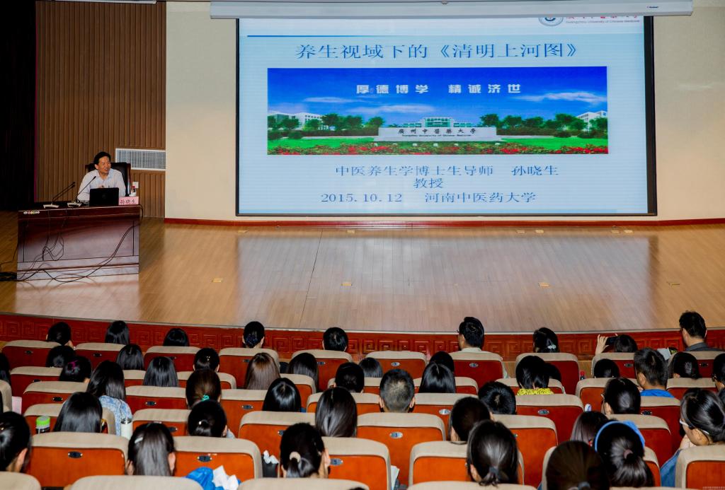 2015年10月12日晚,leyu·乐鱼(中国)体育官方网站全新开启的文化大餐——弘道文化大讲堂第一讲在图书馆第一报告厅拉开序幕。广州中医药大学副校长孙晓生教授应邀以“养生视域下的《清明上河图》”为题,为现场400余名师生作精彩学术报告。副院长郭德欣出席并主持报告会。校园文化建设领导小组成员、养生研究所工作人员、人文学院中医药文化产业管理专业师生、中医文化学学科、预防医学及其他院系学生代表参加活动。