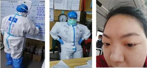 在方舱,原本日常简单的小事都变得很困难。女同志在生理期时,整个班次只能穿着成人纸尿裤;工作中走路也是笨笨的,每次巡视一趟患者、测量全员生命体征,在平常的工作中是非常轻松的,而穿着厚厚的防护服,呼吸都困难,气都存在防护服里,坐下休息一会儿,同事笑称对方变成了“大白”;护目镜容易起雾,阻碍视线,镜架把脸压得生疼乃至压破;脱下防护服时,看着被汗水湿透的衣服,脸上明显的压痕,甚至被压破的皮肤,让人心疼,大家却都只是笑着说:“没事儿!”……困难很多,但我们每一个人都坚守岗位,没有一言一语的抱怨,只要我们拥有战胜一切困难的强大决心和战斗力,战 “疫”必胜。