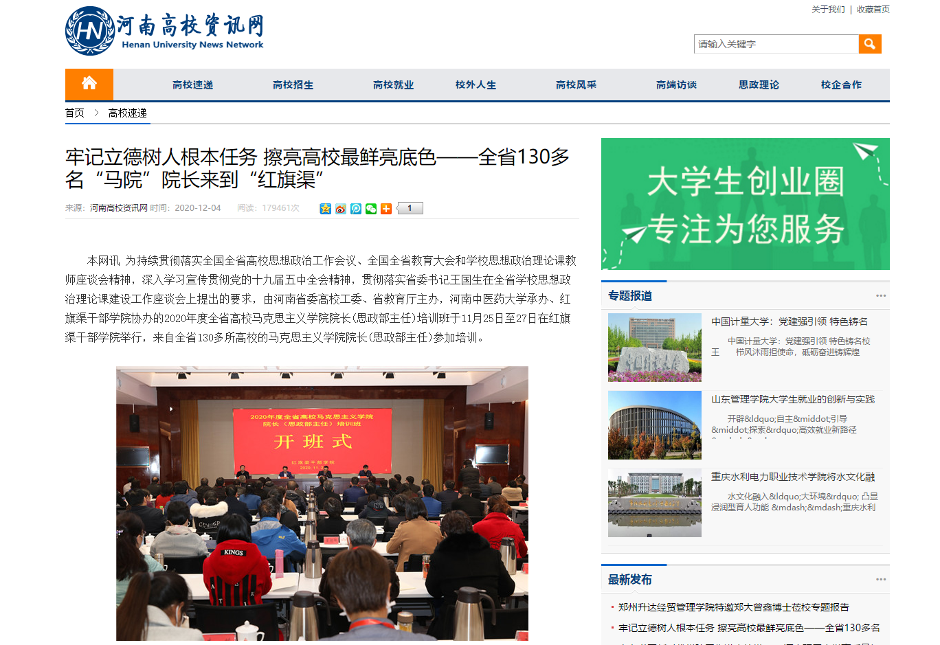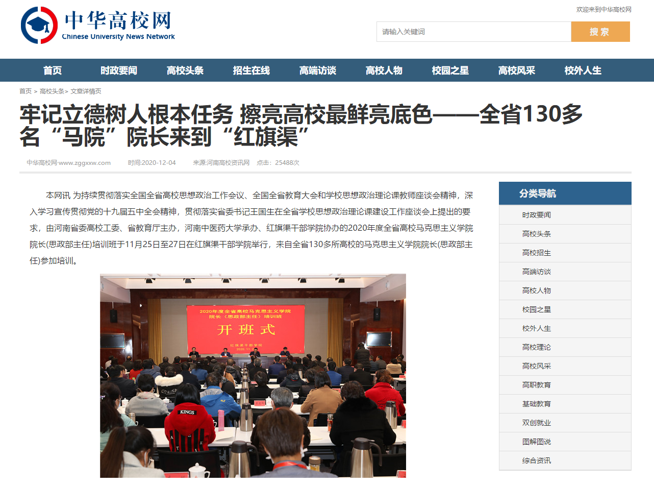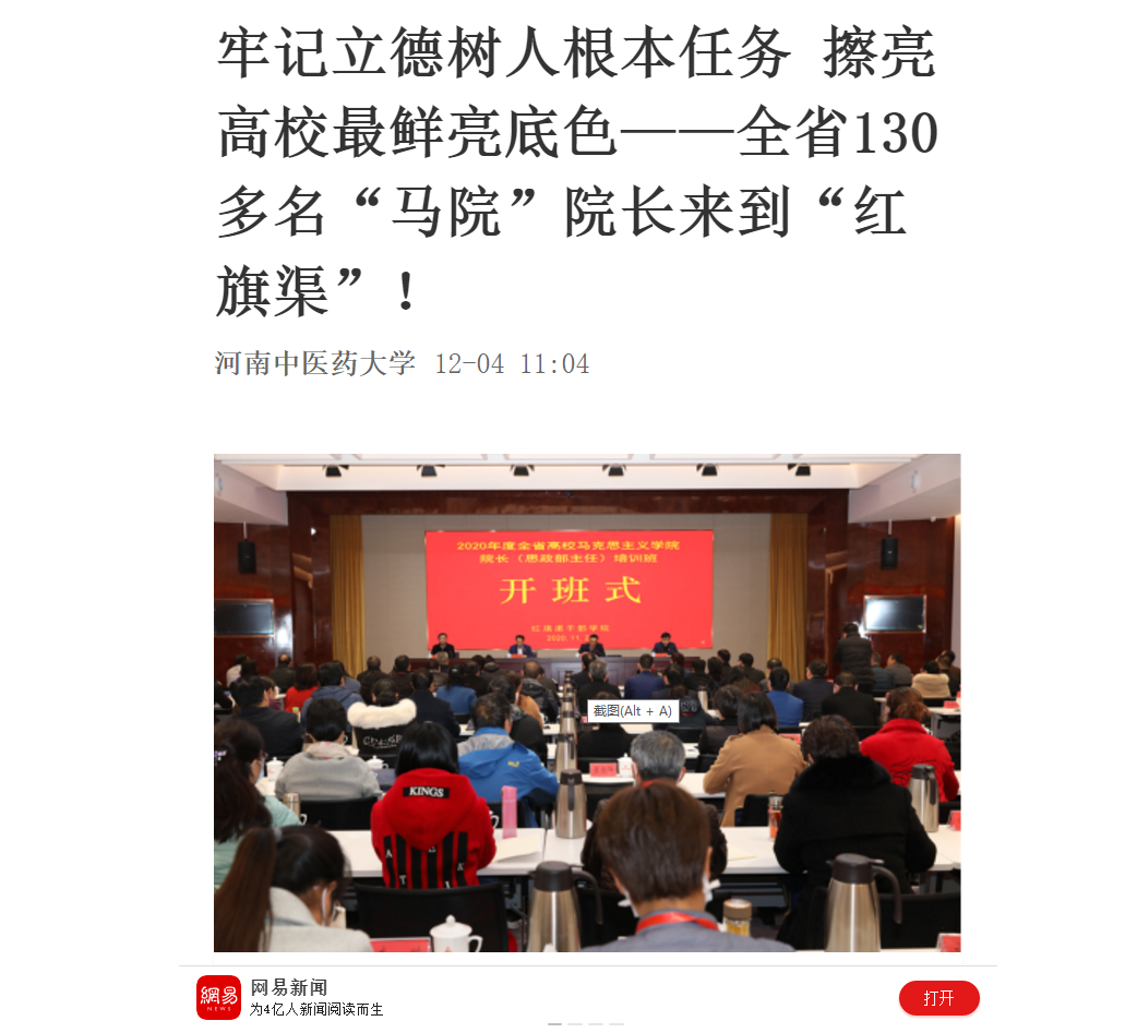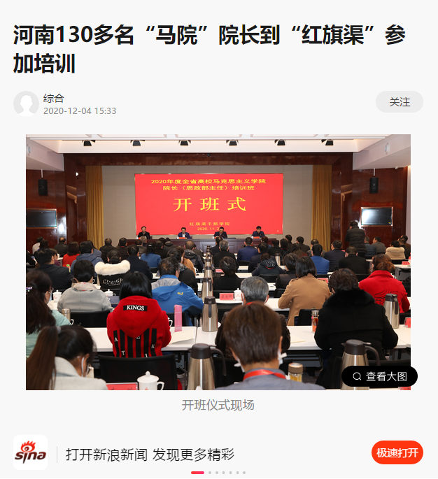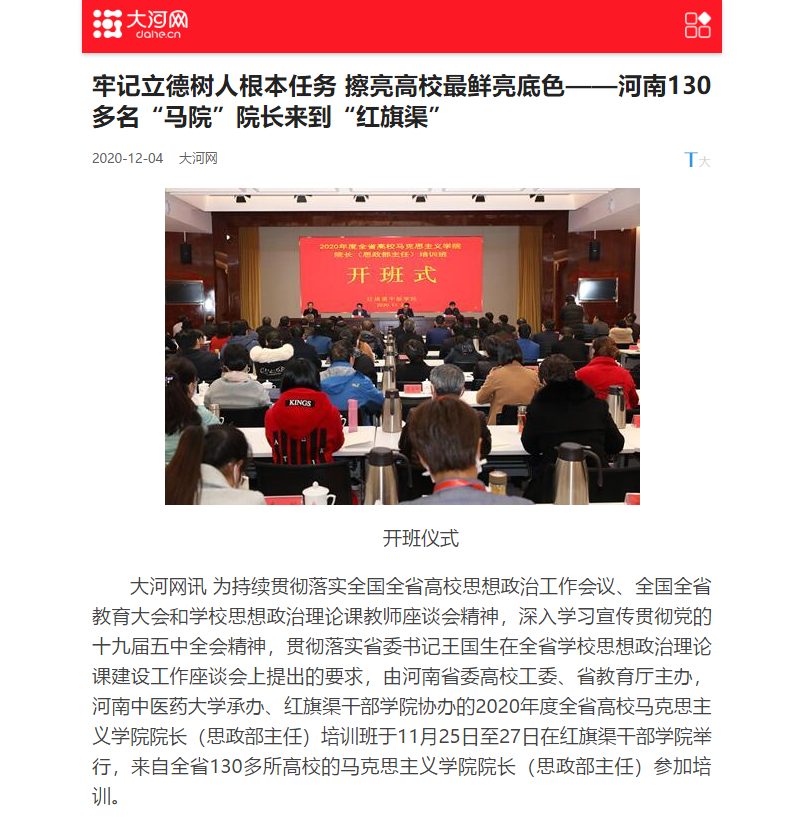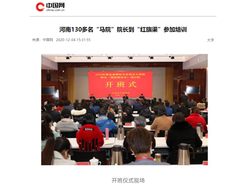 编者按:2020年12月4日,中国网、中华高校网、大河网、新浪新闻、网易新闻、河南高校资讯网对leyu·乐鱼(中国)体育官方网站承办2020年度全省高校马克思主义学院院长(思政部主任)培训班进行报道。