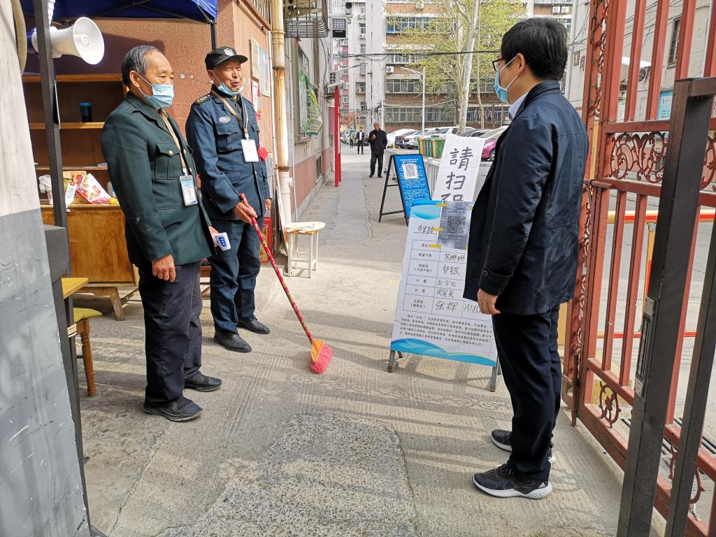 查看城北路家属院门岗疫情防控情况