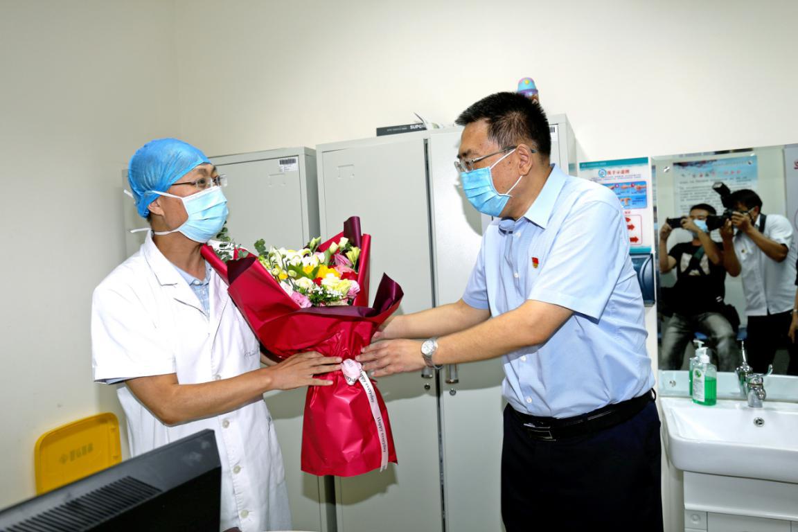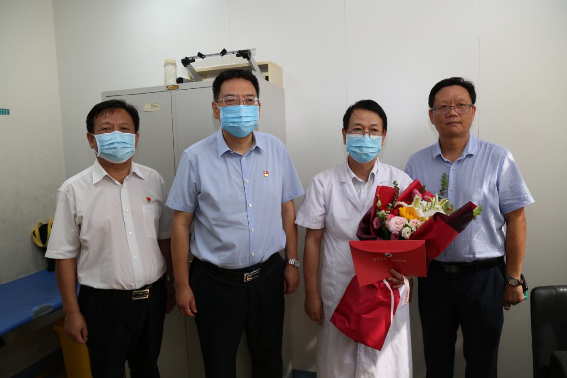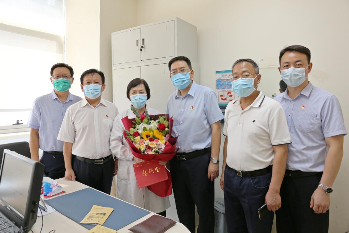 本网讯(文/何世桢 图/张金环)金秋九月,丹桂飘香。2020年9月7日,在第36个教师节来临之际,学校党委书记别荣海带领校人事处处长、教师工作部部长陈相新、党委办公室副主任张顺超一行到leyu·乐鱼(中国)体育官方网站一附院,看望慰问奋战在临床、教学一线的教职工,向他们致以节日的问候和良好的祝愿。一附院党委书记翟剑波、院长朱明军等院领导参加慰问。