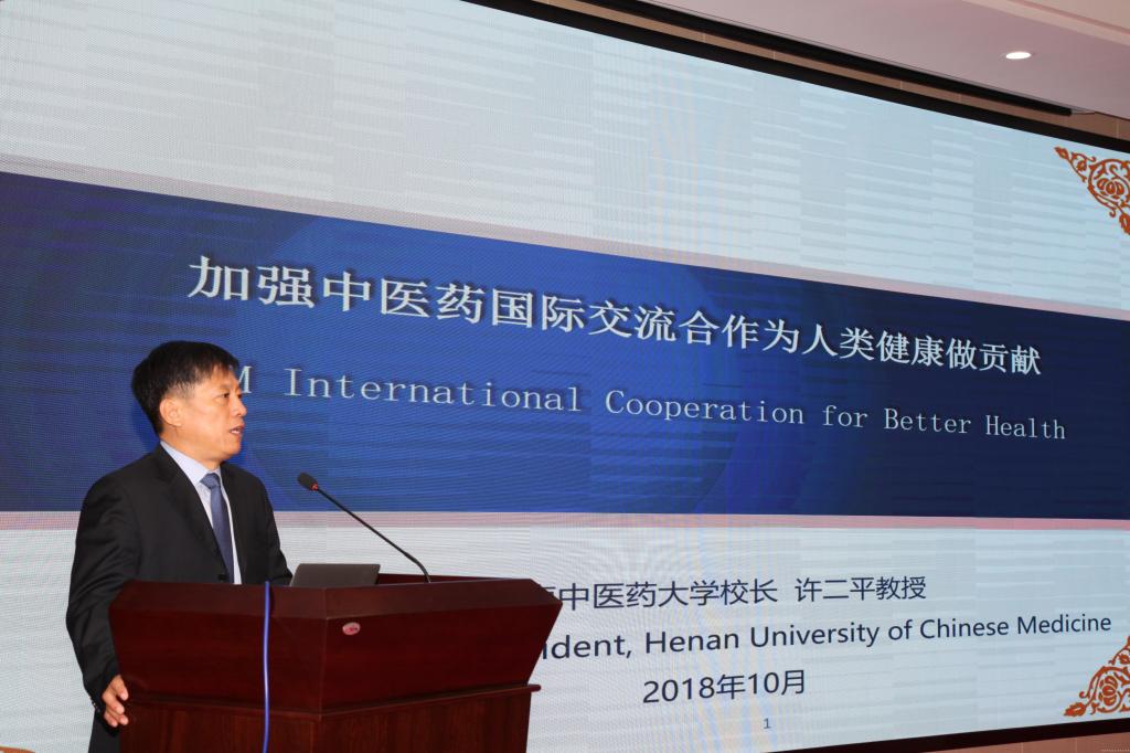 2018年10月10日上午,中医药国际发展高级研修班暨海外中医侨领培训班在leyu·乐鱼(中国)体育官方网站图书馆第二报告厅正式开班。授课教师代表、相关部门负责人及来自14个国家的60名学员参加开班仪式,中医药国际合作基地(河南)主任、许二平校长在开班仪式上做主旨讲话。