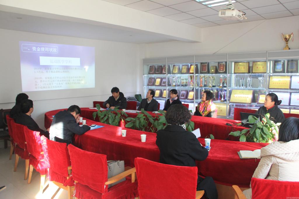会上,体育教研部主任孙再玲就2014年重点学科建设情况,从资金使用、学科科研、学术交流、外出学习、相关档案整理、遗留问题整改、目前仍存在的问题等七个方面作了详尽汇报。检查组对体育教研部重点学科工作取得的成绩表示赞扬,同时对体育教研部重点学科建设如何突出中医特色,开发中医临床应用功能,加强师资队伍建设、注重人才培养、提高设备档次等方面提出了建议。