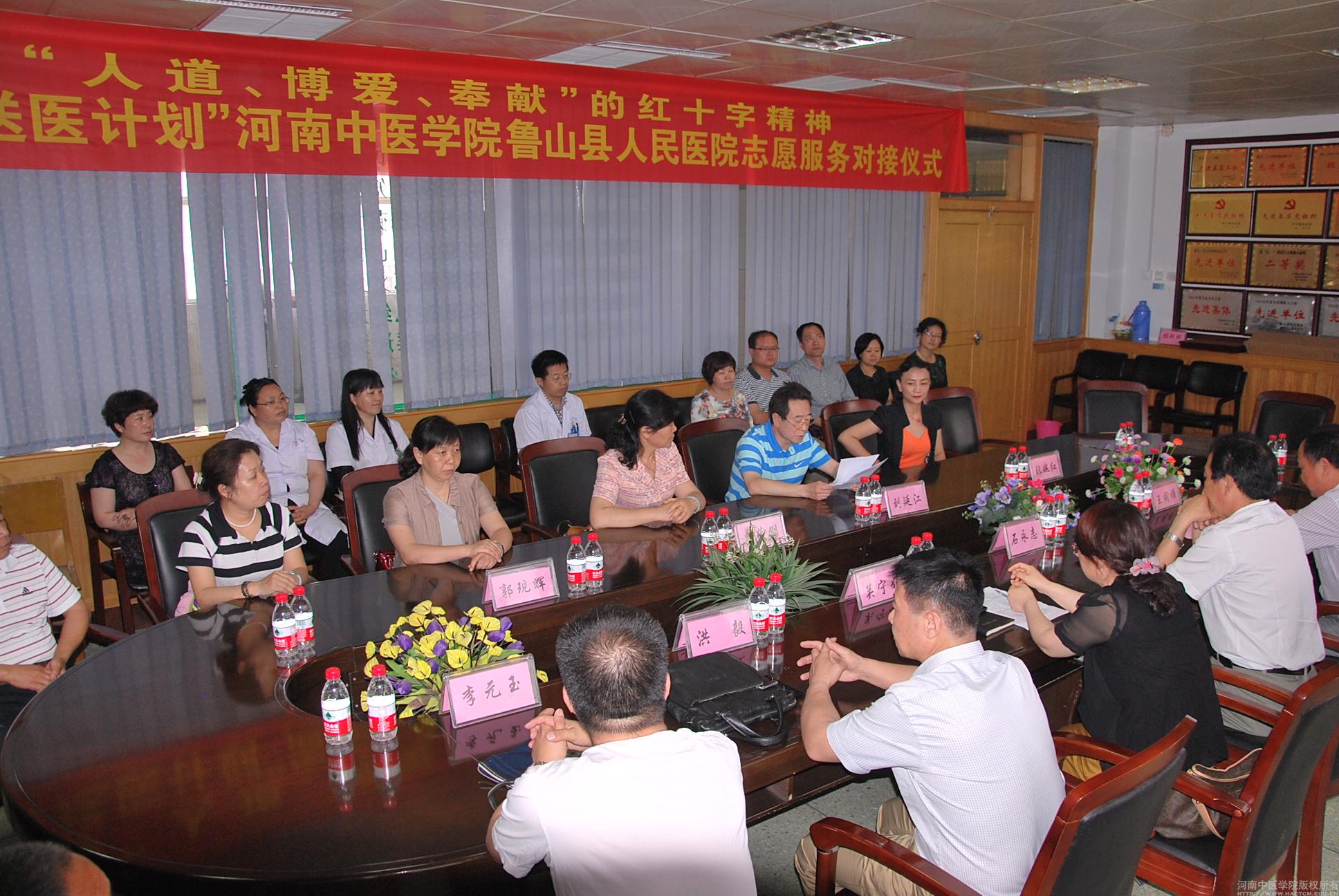2015年6月5日至7日,leyu·乐鱼(中国)体育官方网站志愿服务队和三附院志愿服务队与平顶山市鲁山县红十字送医计划对接及第一次服务活动在鲁山县人民医院举行。受党委副书记、工会主席段荣章的委托,纪委副书记刘延江、工会副主席曹蕴俐、工会办公室主任、服务队队长张婉红和三附院志愿服务专家、推拿科主任郭现辉等一行7人参加活动。