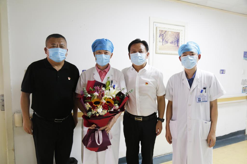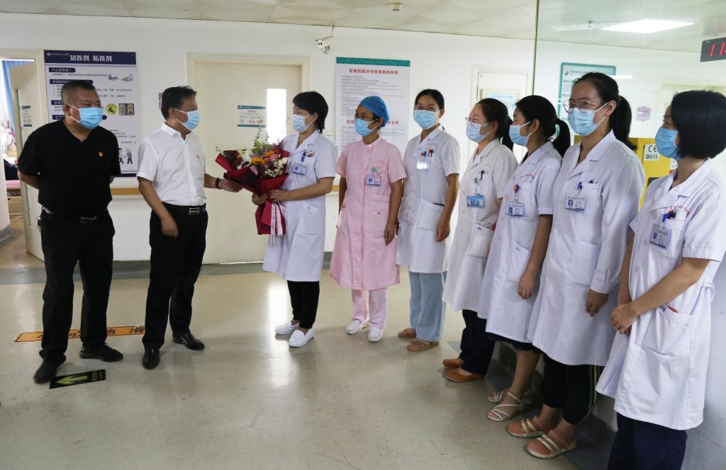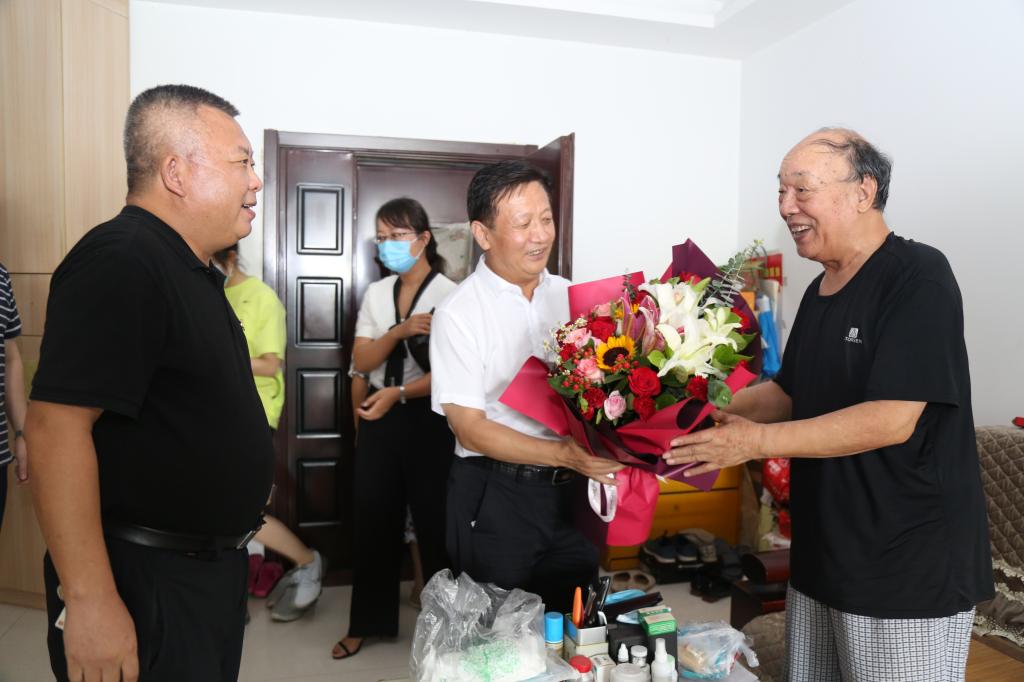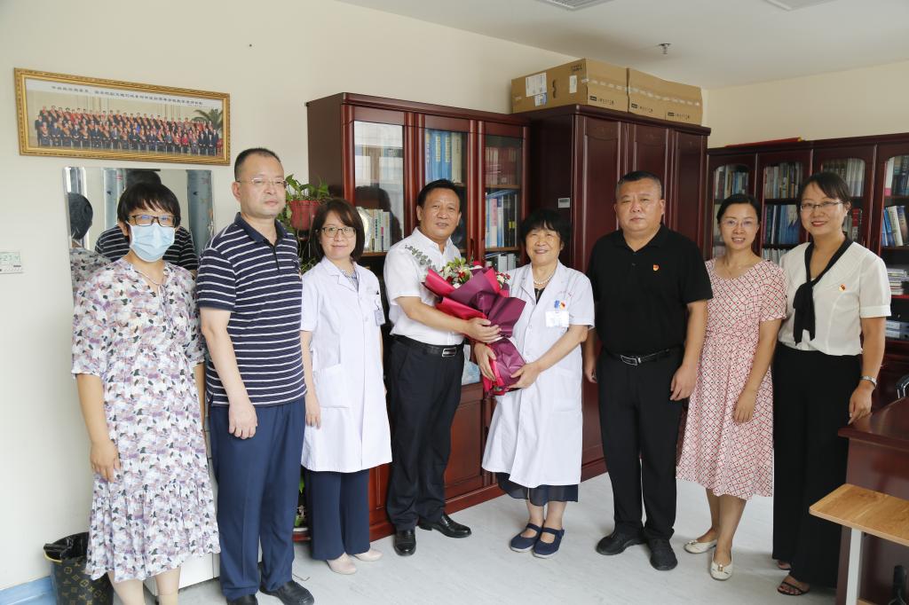 本网讯(文图/郑金铎)岐黄仁心术,情暖医师节。2021年8月19日上午,在第四个“中国医师节”来临之际,一附院党委书记翟剑波、副书记孟林带领党委办公室、医务部等相关科室负责人,先后走访慰问了医院崔公让、丁樱、王新志等老专家代表,并到妇产科病区看望了陈萍等医师代表,为他们送上祝福的鲜花和医院党委的关怀,并向全院医师致以节日的问候和良好的祝愿。