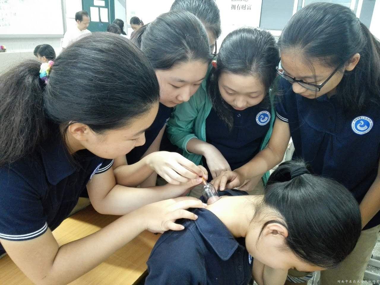 王光安老师首先从如何在生活中感悟科学开始,讲述了科学认识人体、正确认识中医药问题,并以风寒感冒为例,生动地讲述了感冒对人体的影响,同时传授给中学生们风寒感冒的防治办法。随后,王老师用随身带的气罐让学生们现场体验了拔罐对人体疾病的治疗作用,拔罐器的使用方法和注意事项。为了使同学们更好地关注自身健康,养成良好的生活习惯,王老师从被动获得健康和主动争取健康的方法上给大家做了深入的交流,最后,又耐心细致地教给学生传统养生保健功法八段锦。