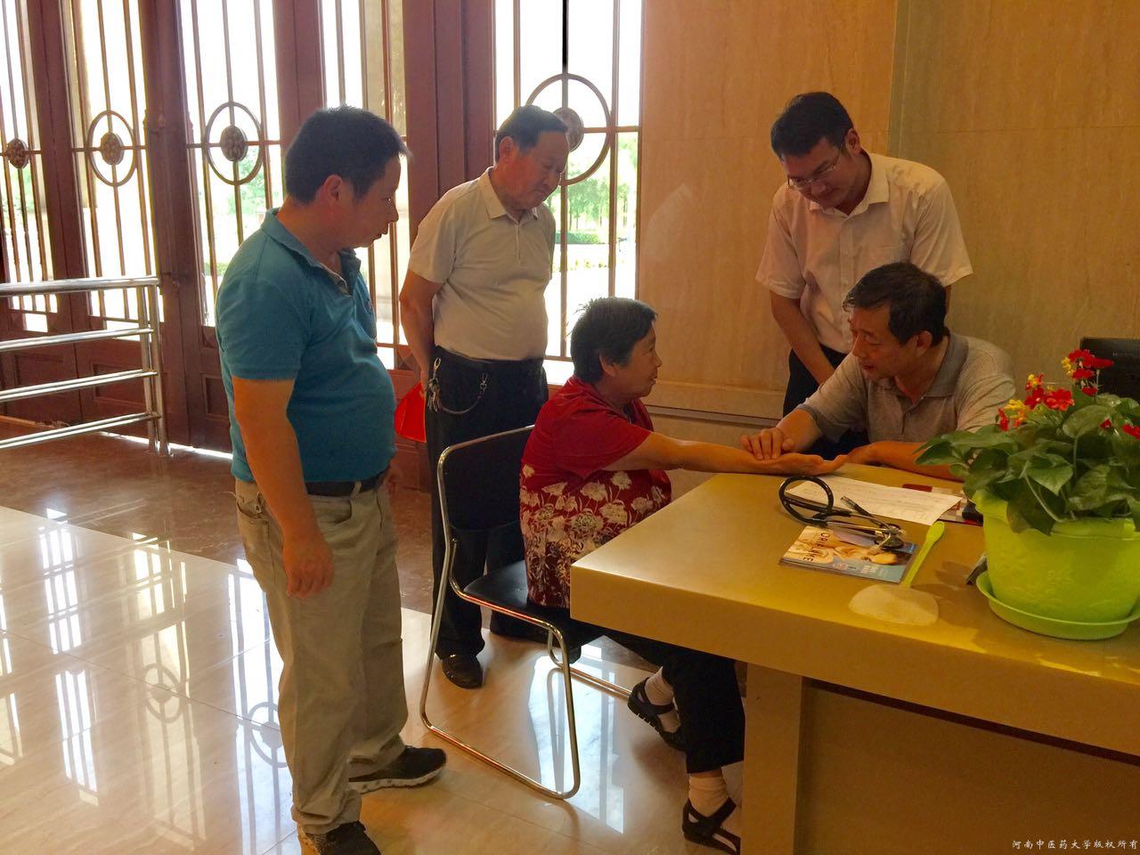为了庆祝中国共产党建党96周年,为基层中医药事业发展做贡献,在leyu·乐鱼(中国)体育官方网站挂职兰考县中医院副院长李桓博士的联系下,2017年6月29日上午,离退休职工党总支组织党员名老中医药专家及在职党员医疗专家到兰考县中医院开展义诊活动。 国家级名老中医专家门成福教授 、候士良教授,中药鉴定专家曹继华教授,三附院心血管科主任周立华教授、国医堂眼科具有40多年工作经验的张素芳副主任医师 、针灸推拿科王雪霞大夫等6位专家参加了义诊活动。