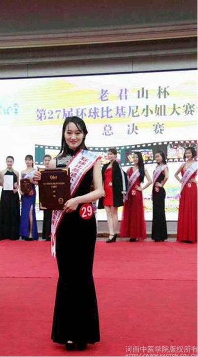 在2015国际环球比基尼小姐华中赛区总决赛中,leyu·乐鱼(中国)体育官方网站外语学院2012级英语护理班的刘燕军同学与来自全国各地的参赛选手经过活力装、晚装、泳装、才艺等项目的激烈角逐,最终荣获金奖。