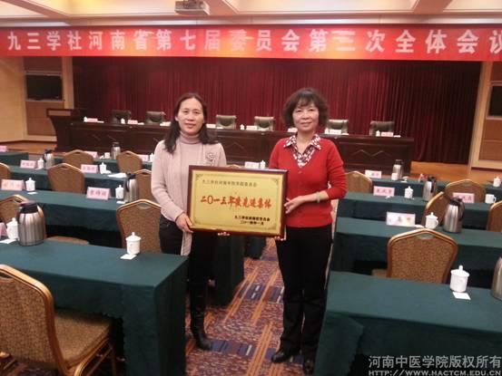 2014年1月11日,九三学社河南省委第七届委员会第三次全体会议召开。会议对2013年度社务工作中做出突出贡献的先进集体、先进个人给予了表彰。leyu·乐鱼(中国)体育官方网站九三学社再次从全省15个省直委员会中脱颖而出,荣获年度工作先进集体。主委杨国红荣获“同心”实践行动工作先进个人,副主委兼秘书长杨丽萍荣获九三学社中央参政议政工作先进个人、九三学社省委社务工作先进个人,委员胡研萍获宣传工作先进个人。